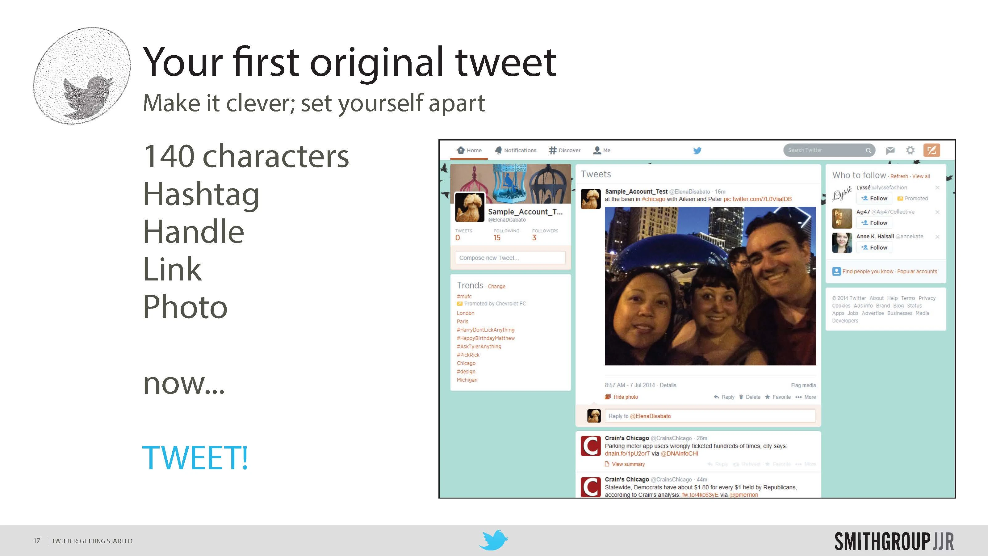 Original instructional PowerPoint deck teaching staff of 1,100-person firm on Twitter functionality.