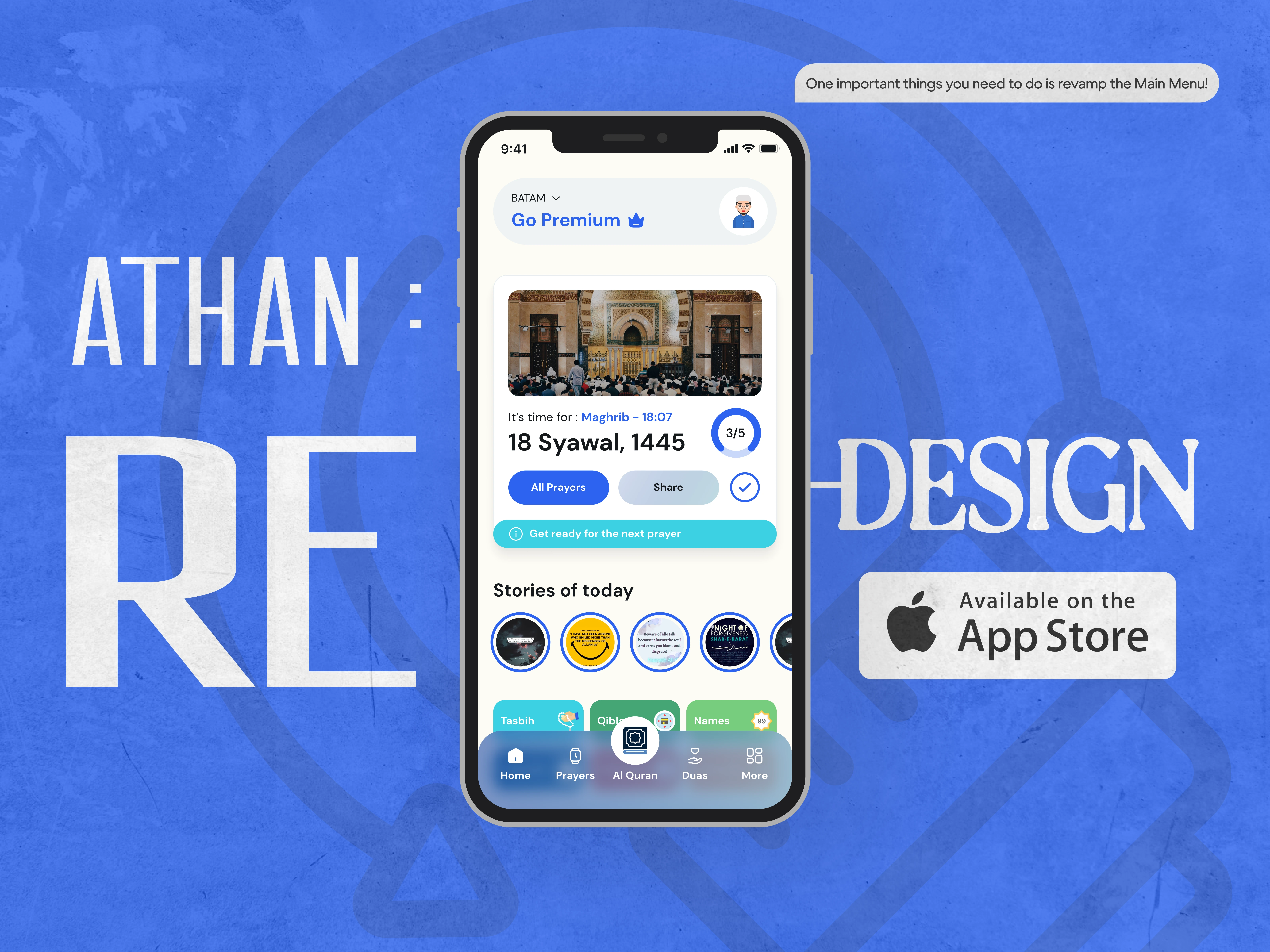 Today I want to present you Athan: Prayer Times & Al-Quran showcase. This redesign project aims to enhance the user experience and interface of the Athan app, addressing identified pain points and leveraging user-centric design principles.