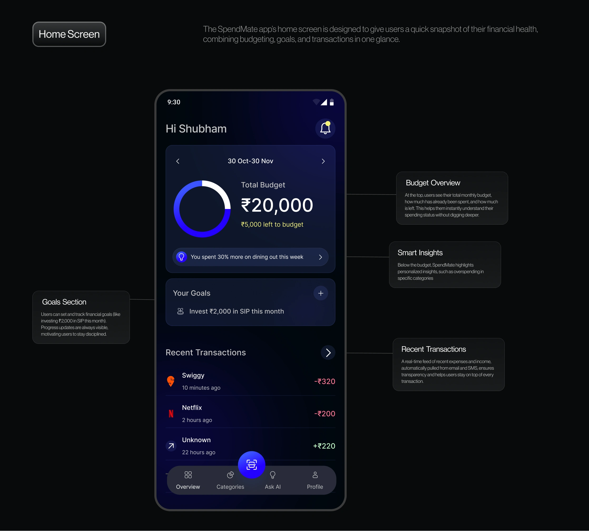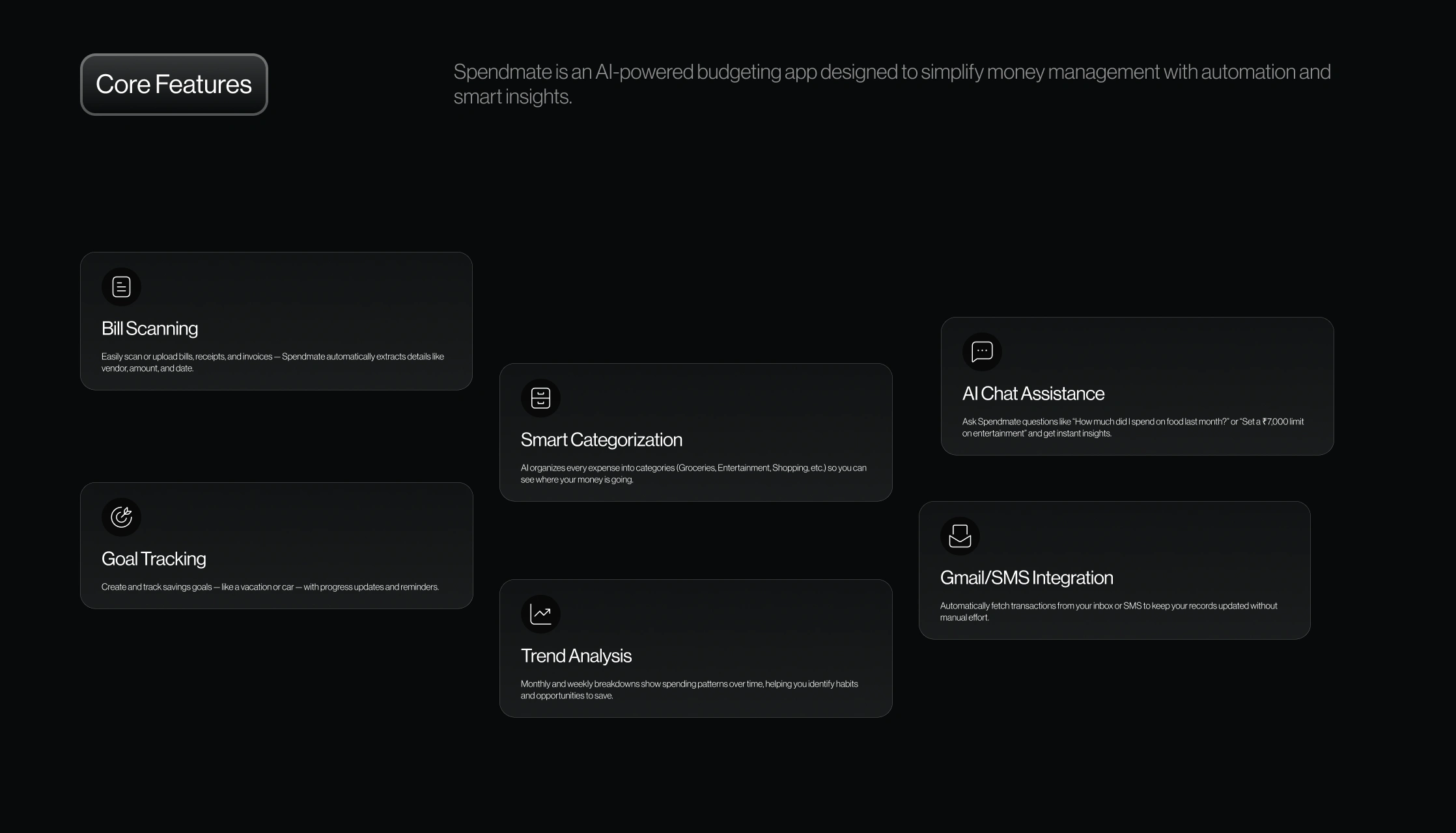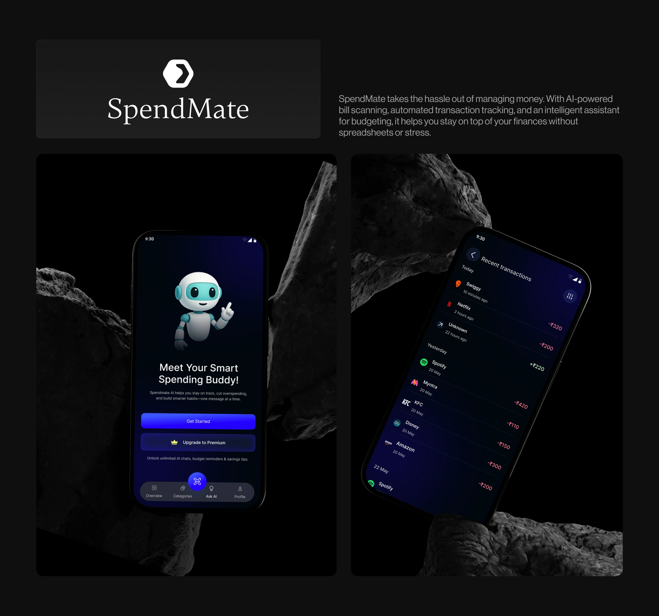 SpendMate takes the hassle out of managing money. With AI-powered bill scanning, automated transaction tracking, and an intelligent assistant for budgeting.