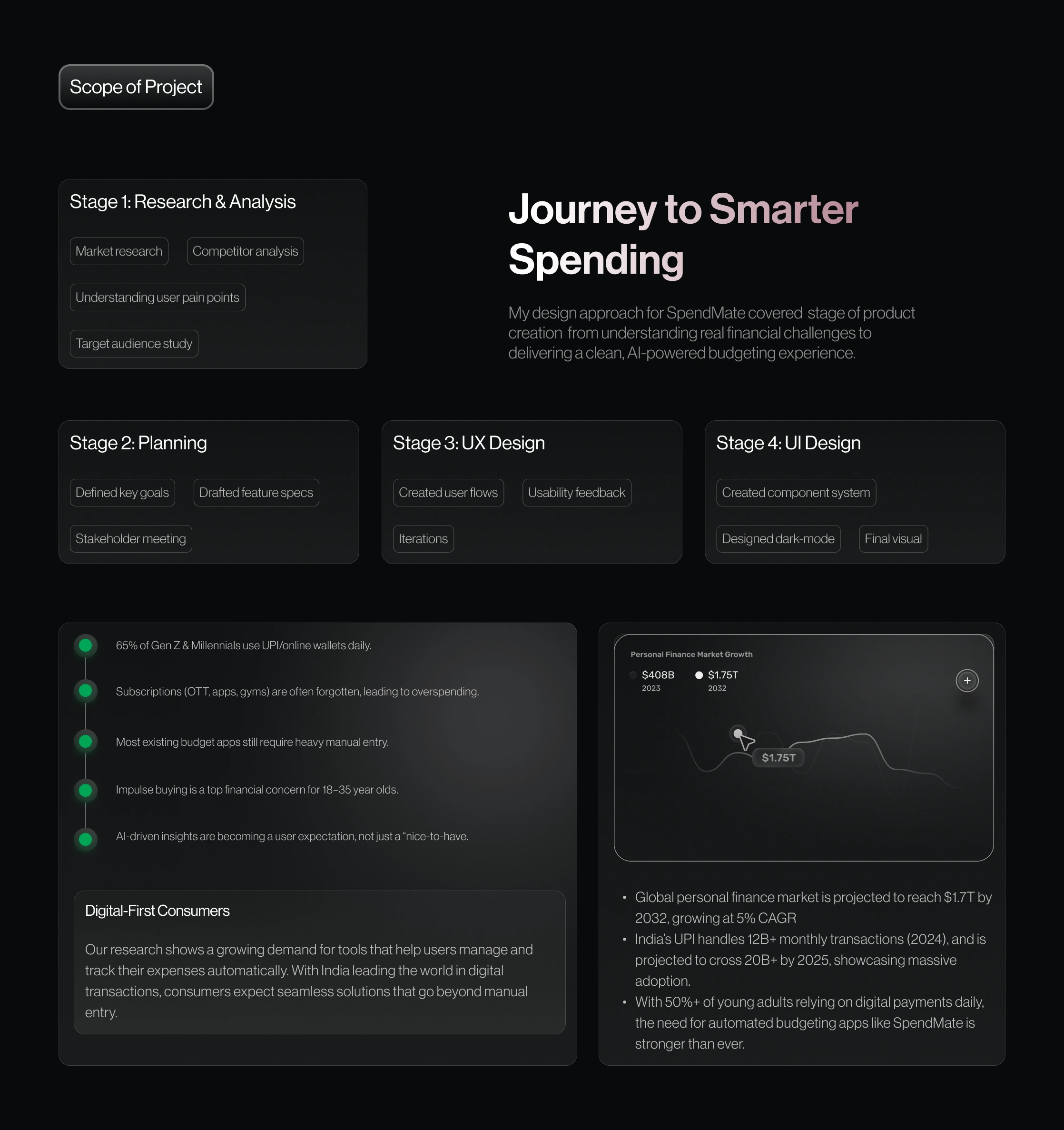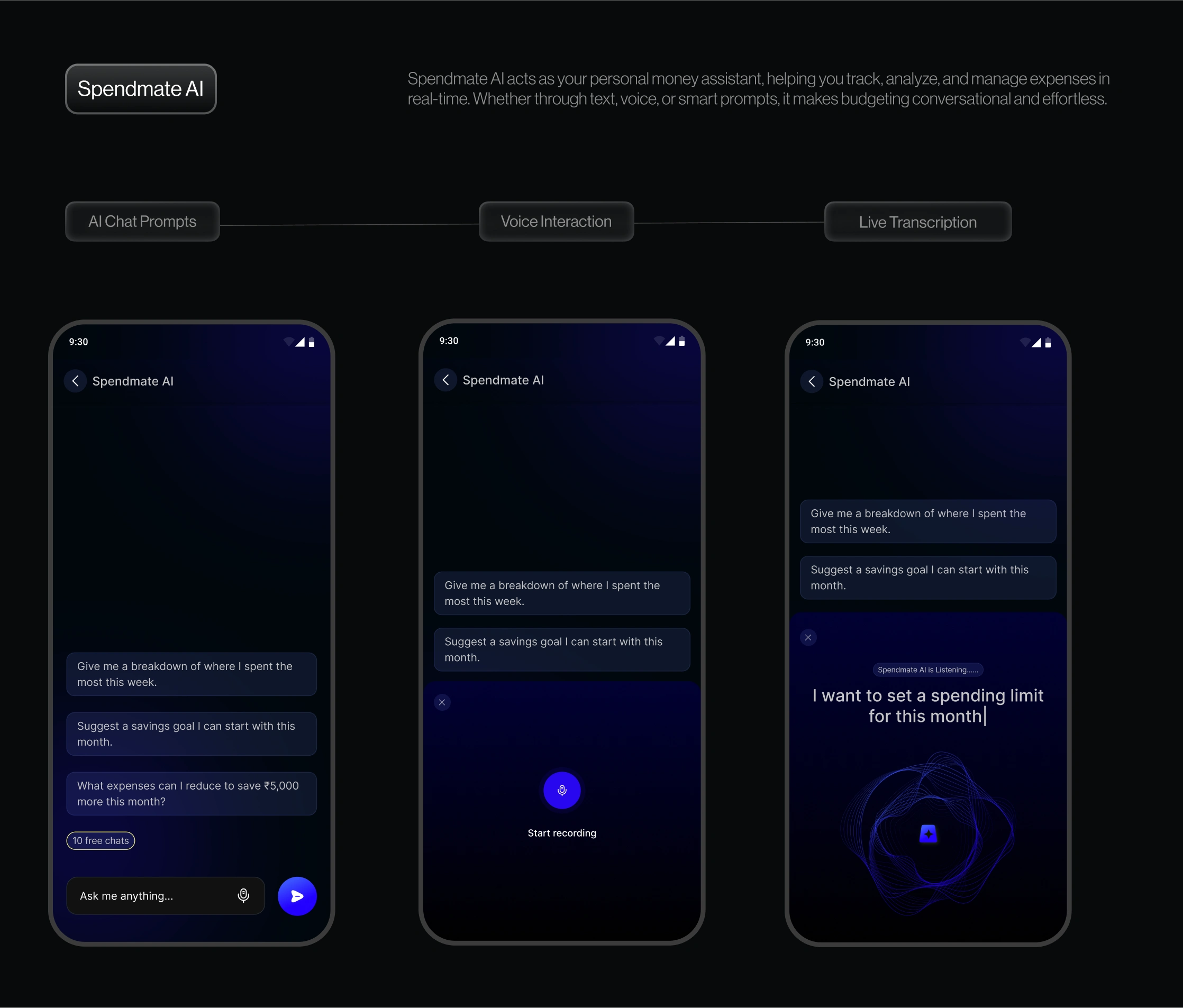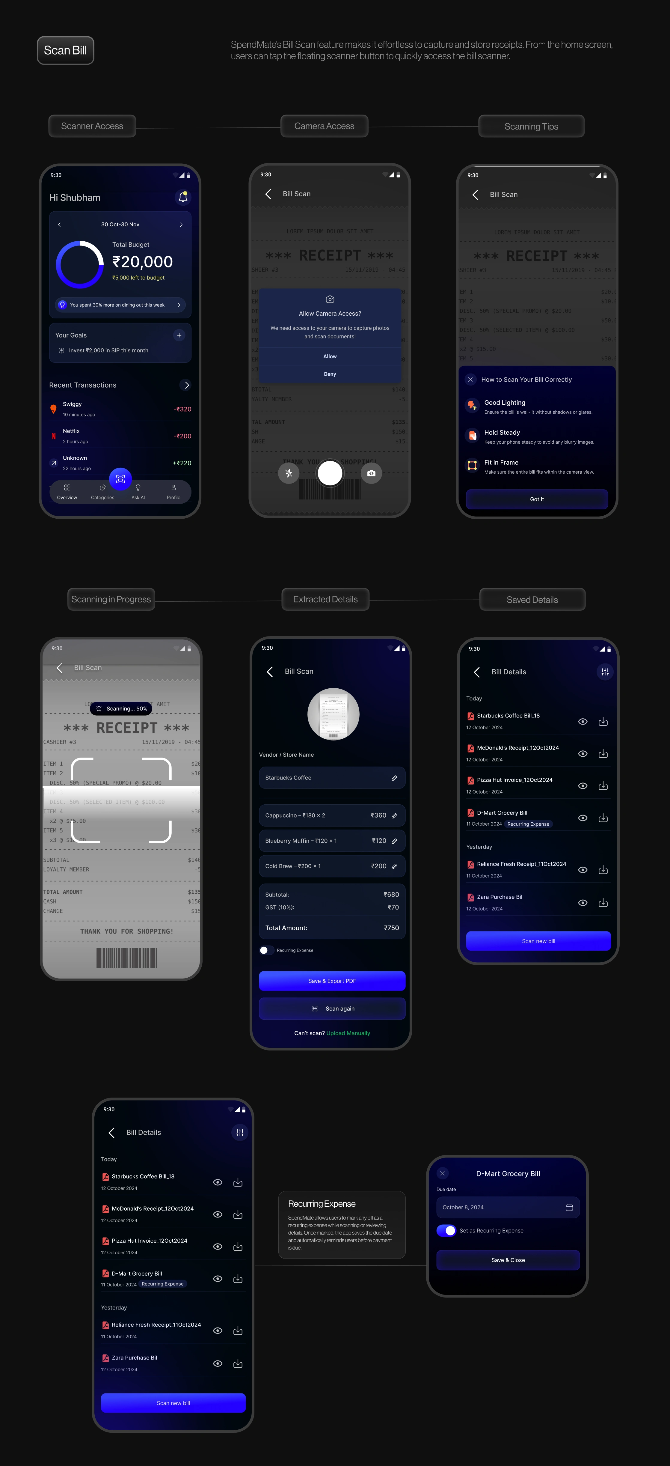 SpendMate takes the hassle out of managing money. With AI-powered bill scanning, automated transaction tracking, and an intelligent assistant for budgeting.