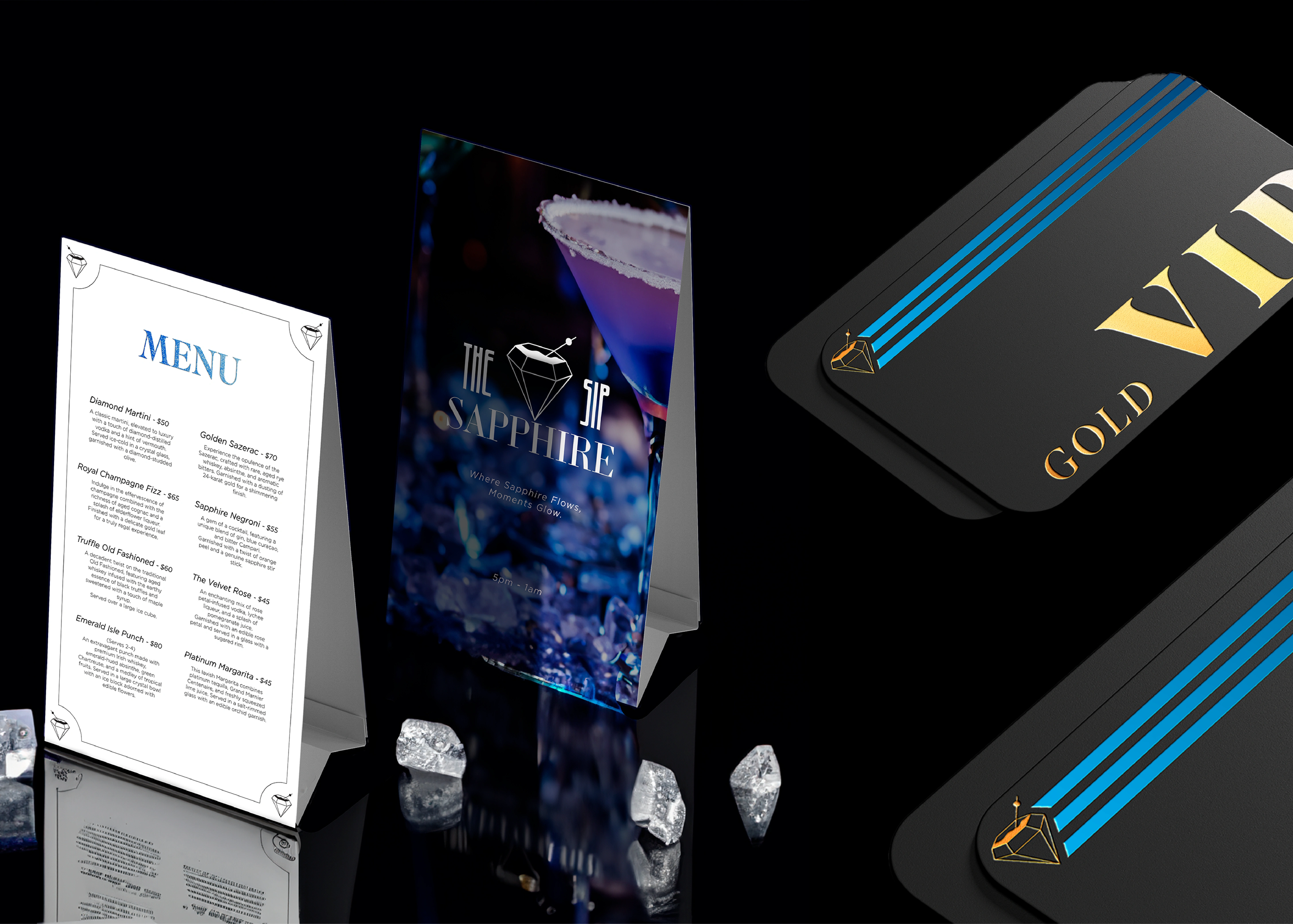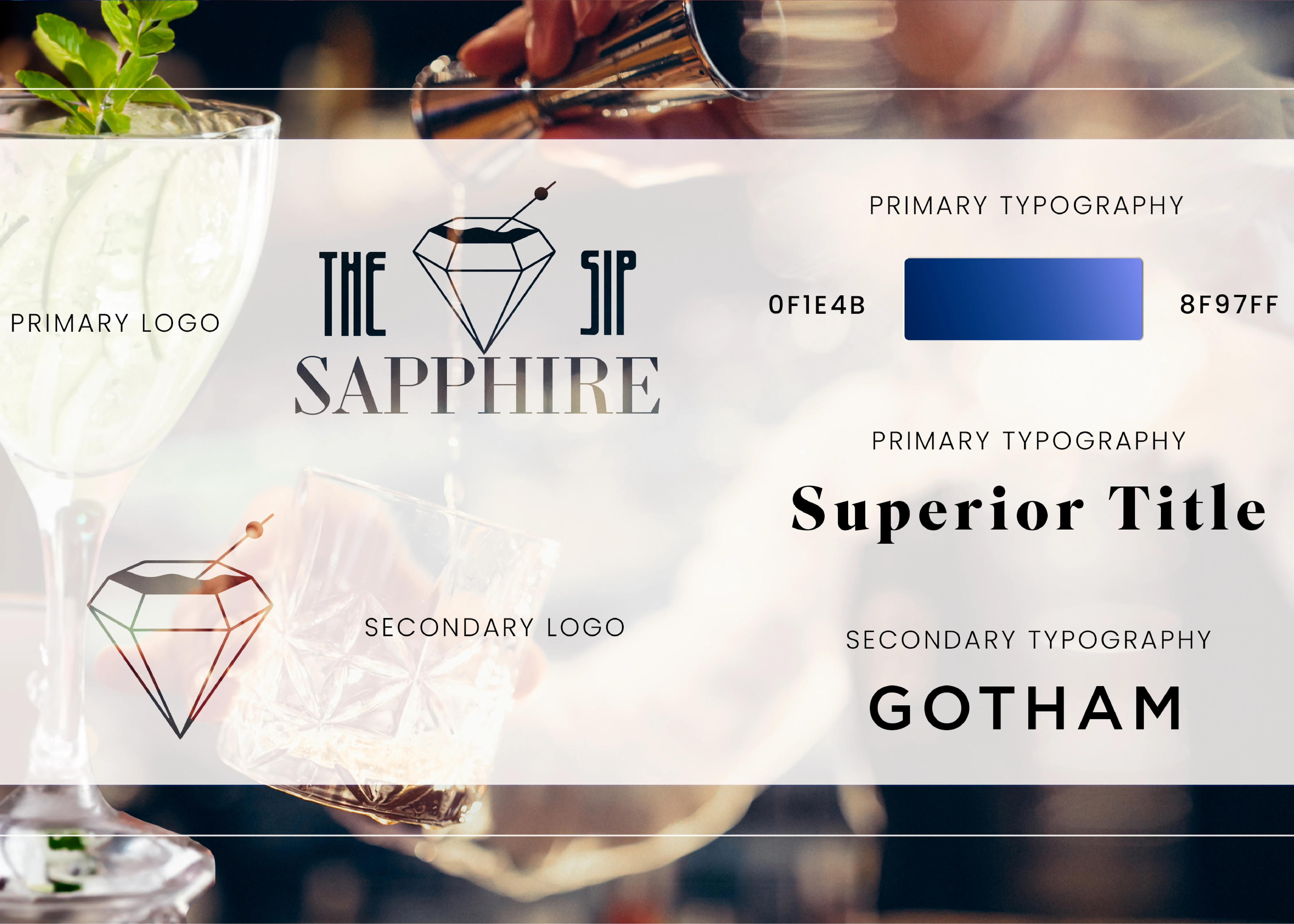 The Sapphire Sip! Branding for an elegant, luxurious elite bar.