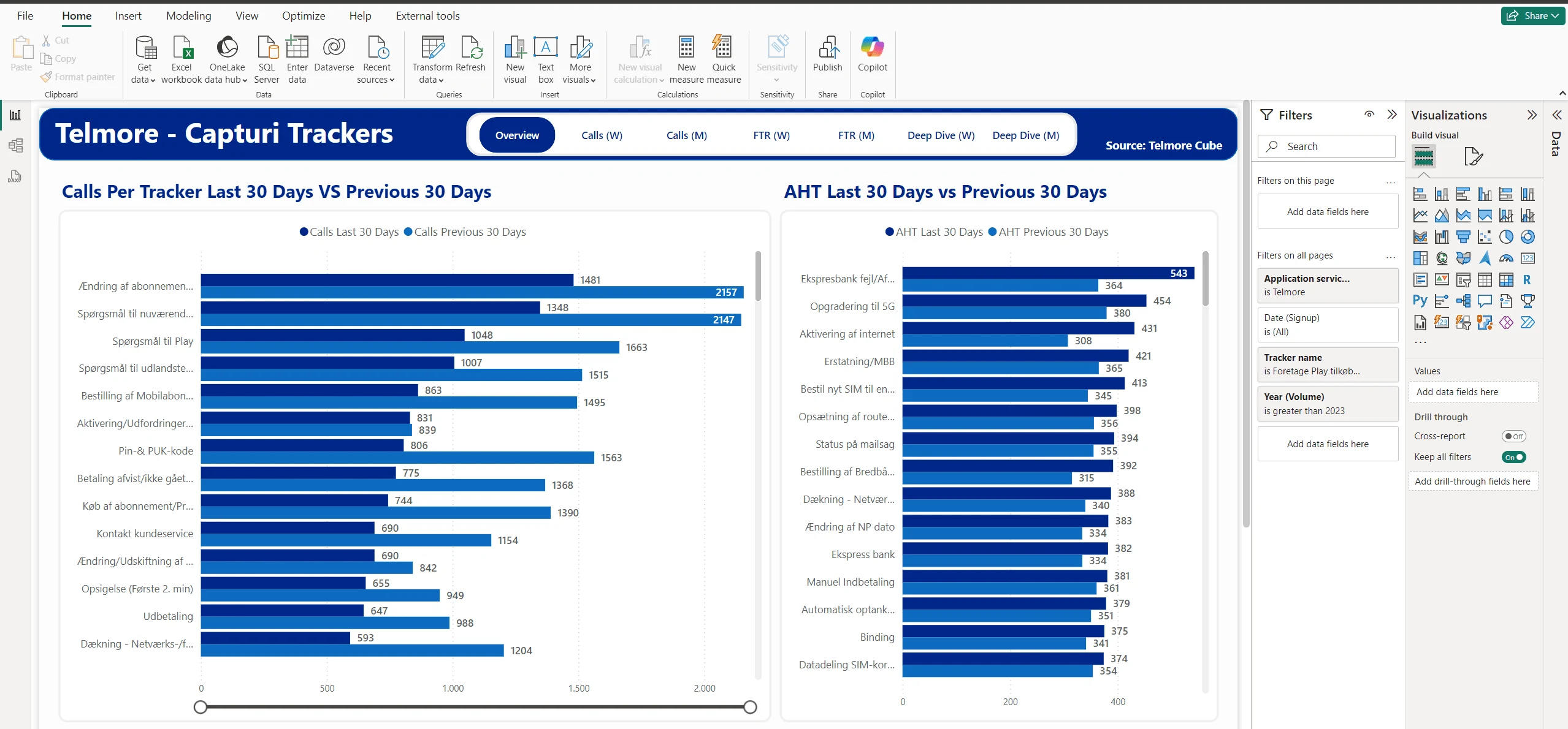 Dashboards and reports creation using Power BI for Telmore (Telco company in Denmark)