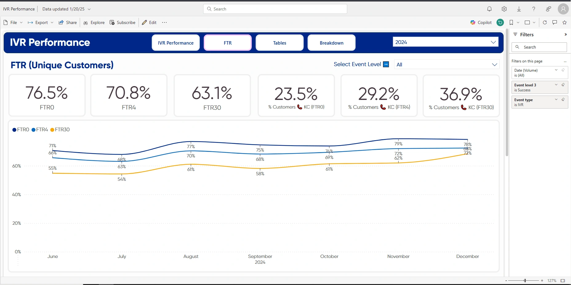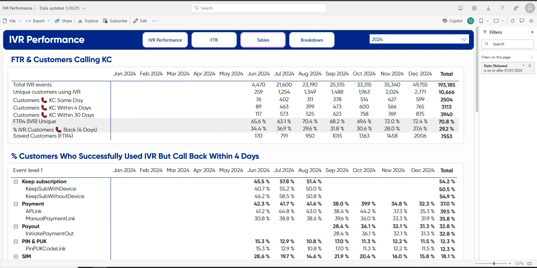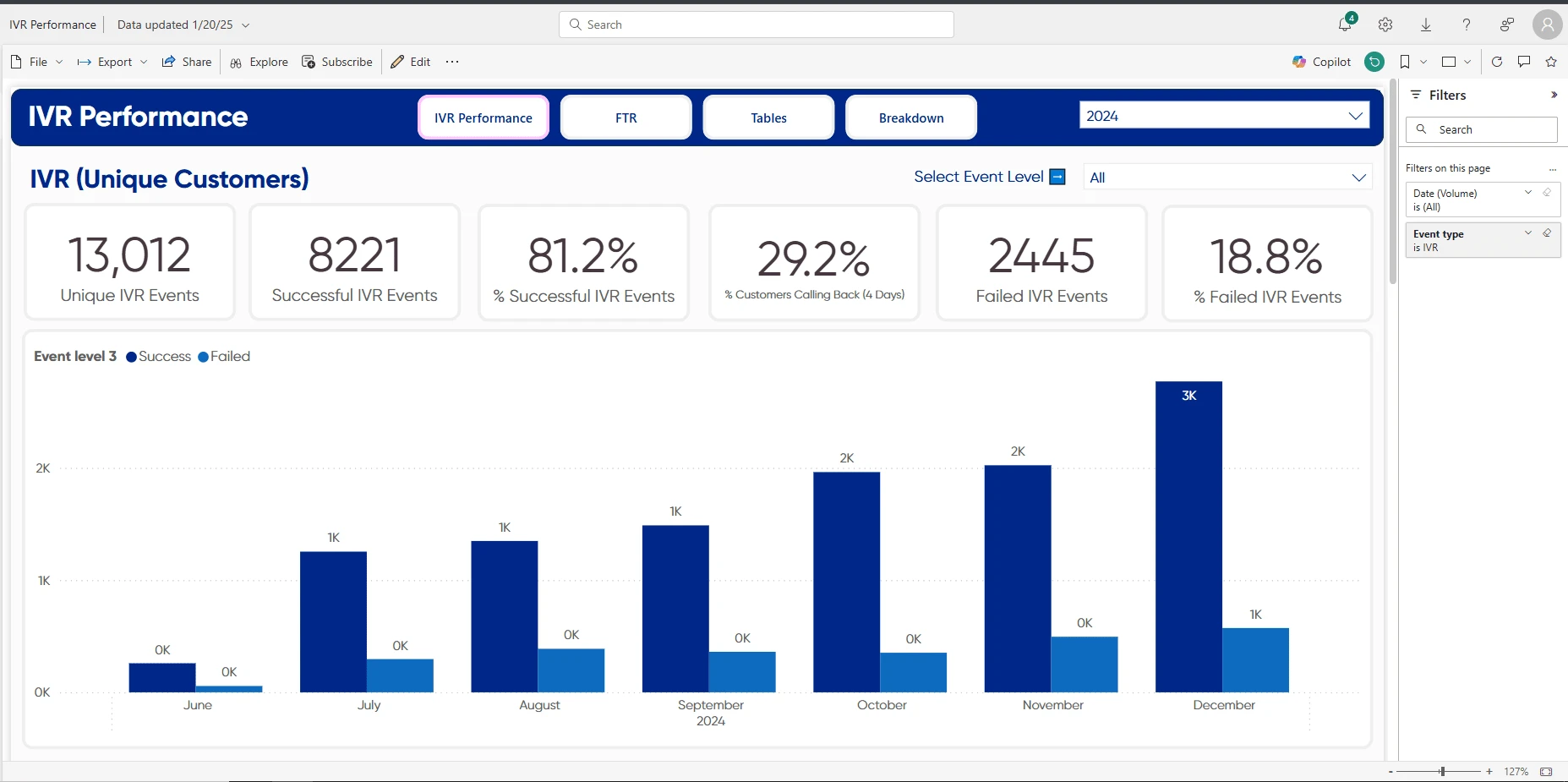 This dashboard tracks the performance of our IVR (interactive voice response).