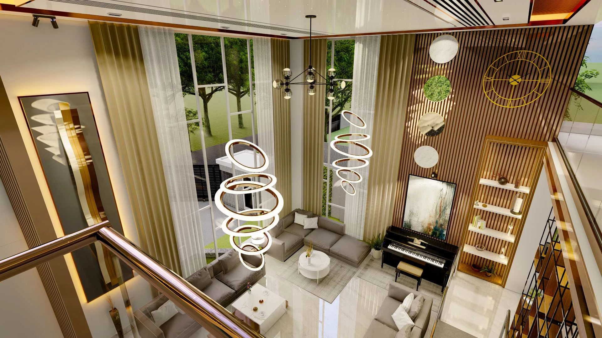 I created a photo-realistic 3D rendering of a luxury penthouse, showcasing high-end interior design and intricate detailing.