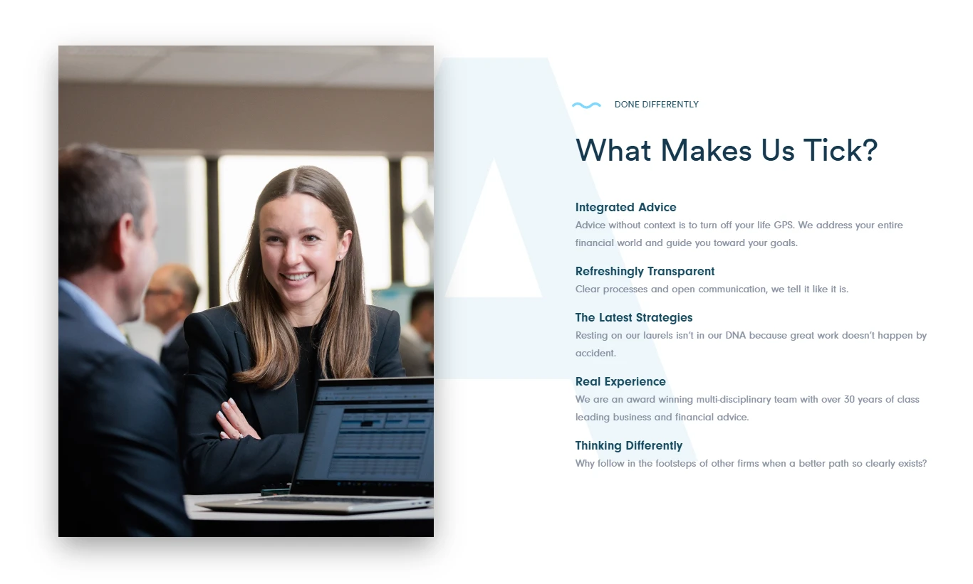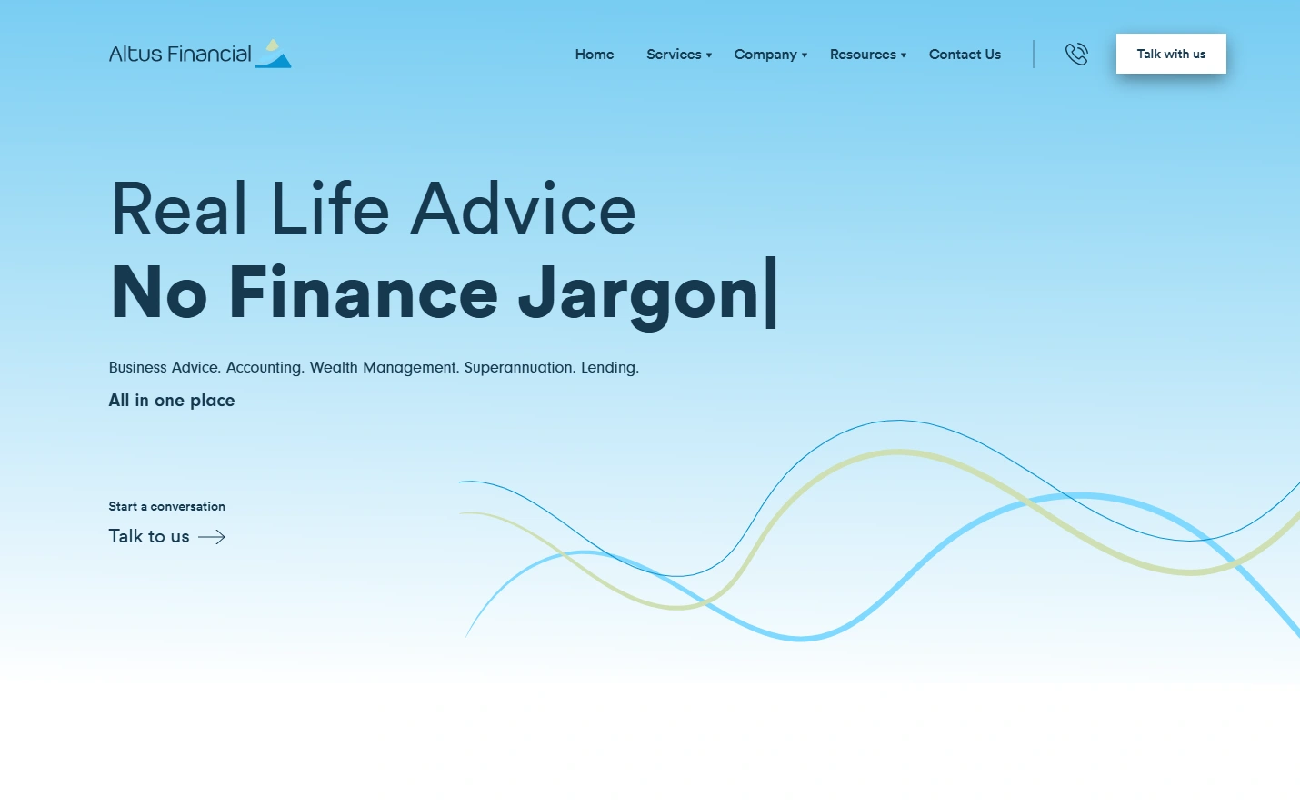 Altus Financial is a financial services firm based in Australia offering integrated business and wealth advisory services. Their stated purpose is to deliver “financial guidance without jargon, doublespeak or fine print,” for both business owners and individuals.