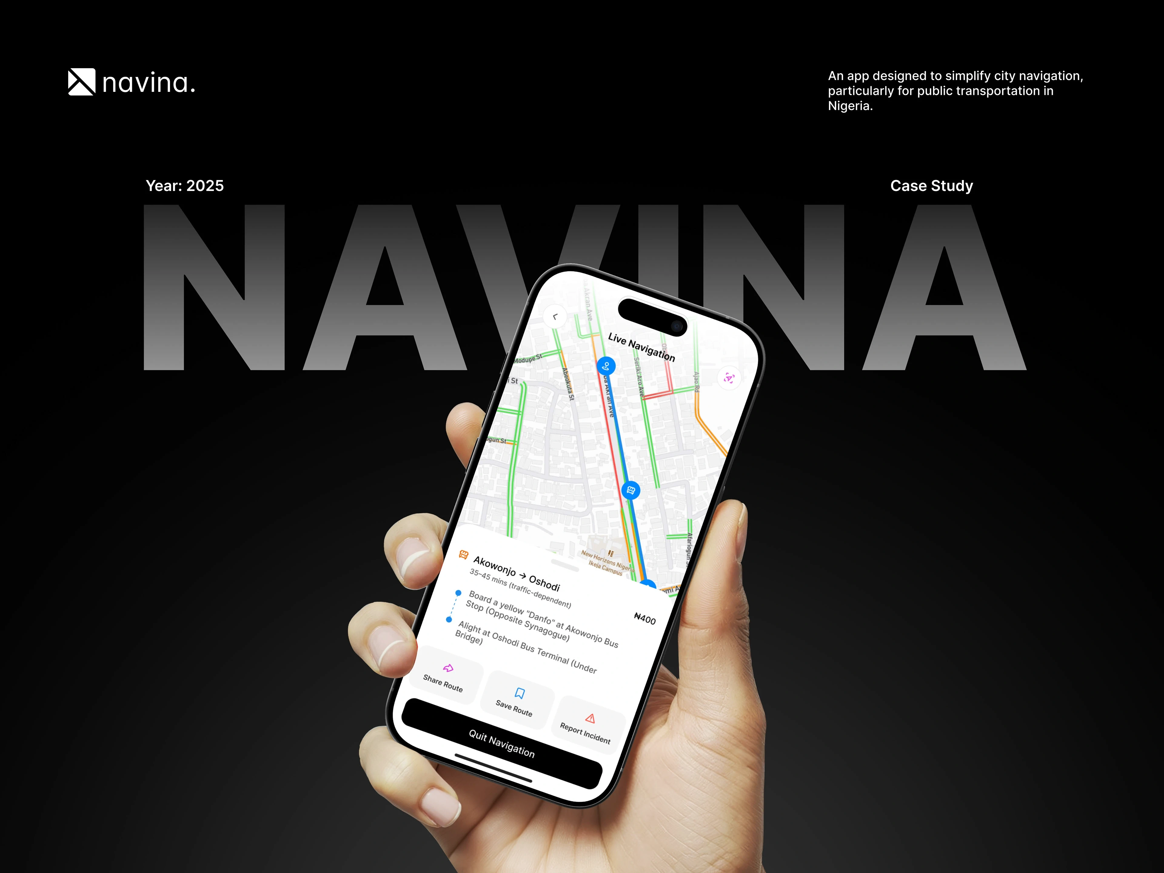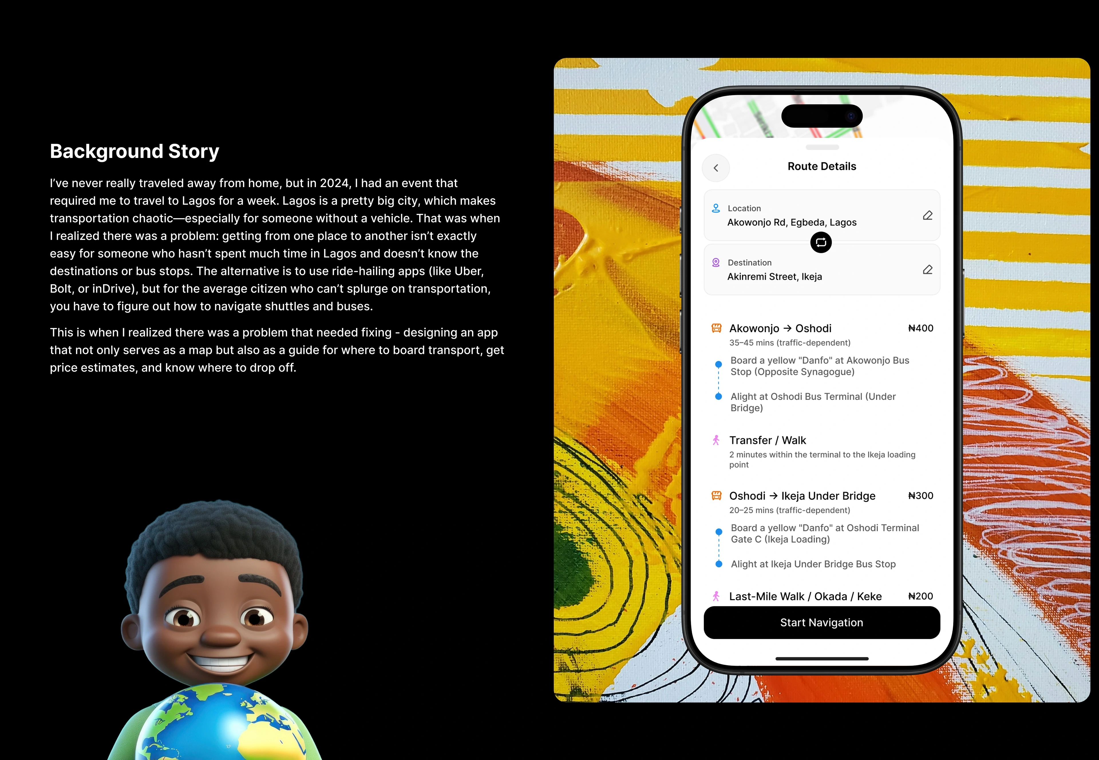 An app designed to simplify city navigation, particularly for public transportation in Nigeria.