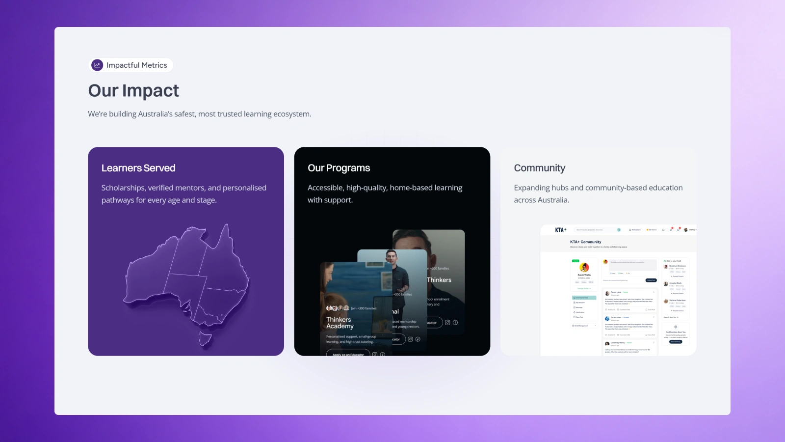 Built on Framer with a component-driven mindset, the landing page can evolve into a broader digital ecosystem while preserving visual consistency and performance.