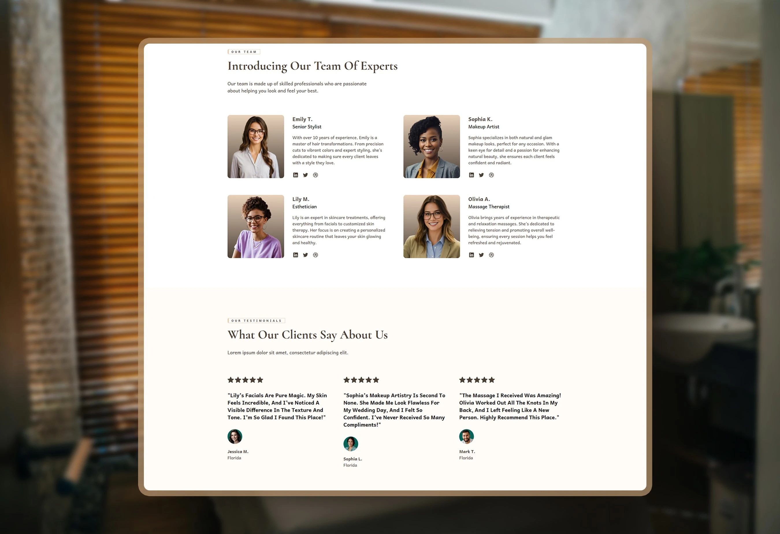The Serenity Spa website is designed to reflect tranquility, luxury, and ease of navigation. With a clean, calming aesthetic, it seamlessly blends soothing visuals and intuitive functionality.