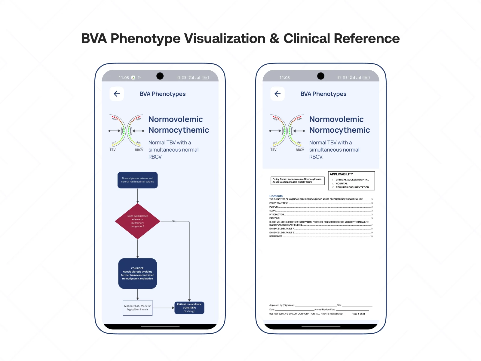 The Daxor Companion App is a clinical decision-support tool designed to simplify the use of Blood Volume Analysis (BVA). The app enables clinicians to quickly determine a patient's BVA phenotype, understand their results more clearly, and access expert clinical guidance all in one intuitive mobile experience.