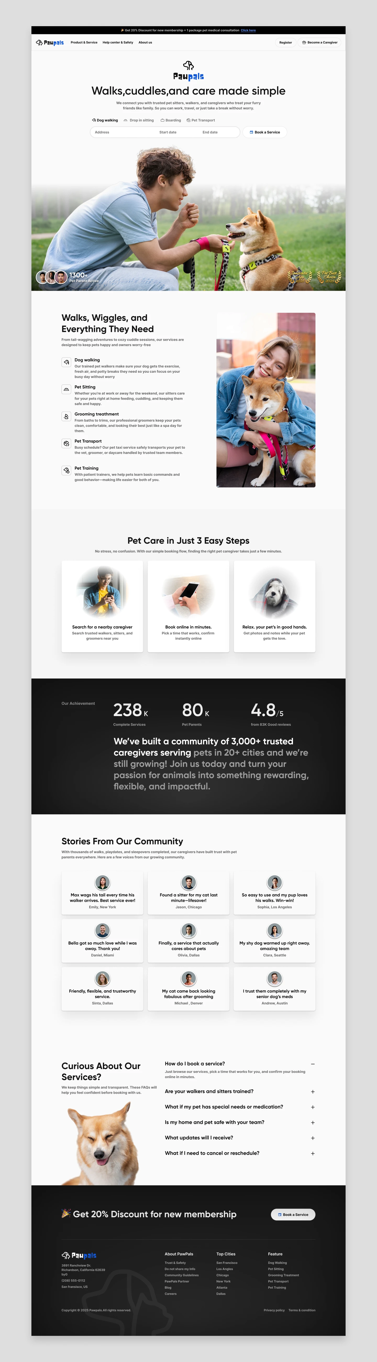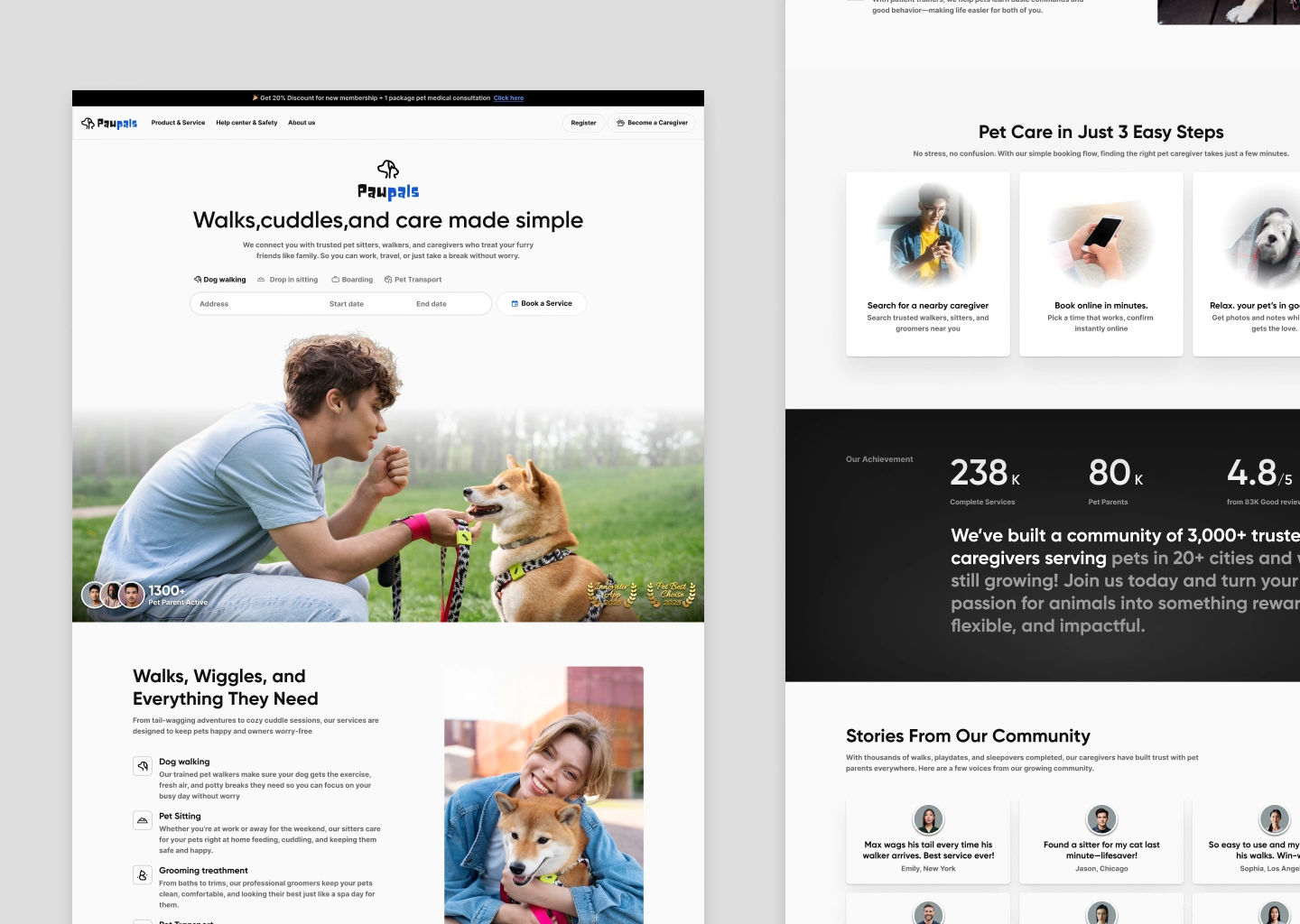 The goal was to design a friendly, trustworthy, and intuitive experience that bridges the gap between busy owners and passionate part-time caregivers.
