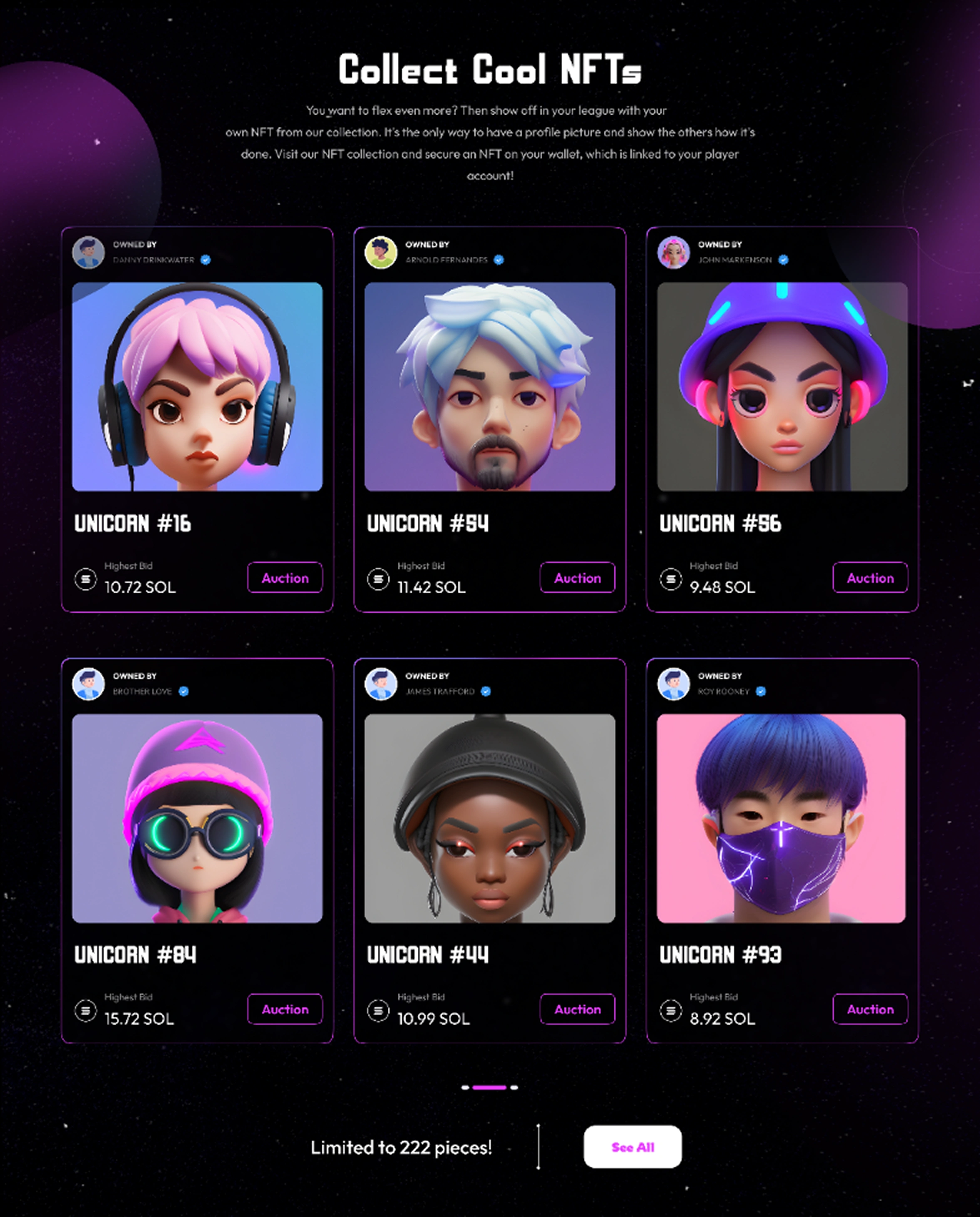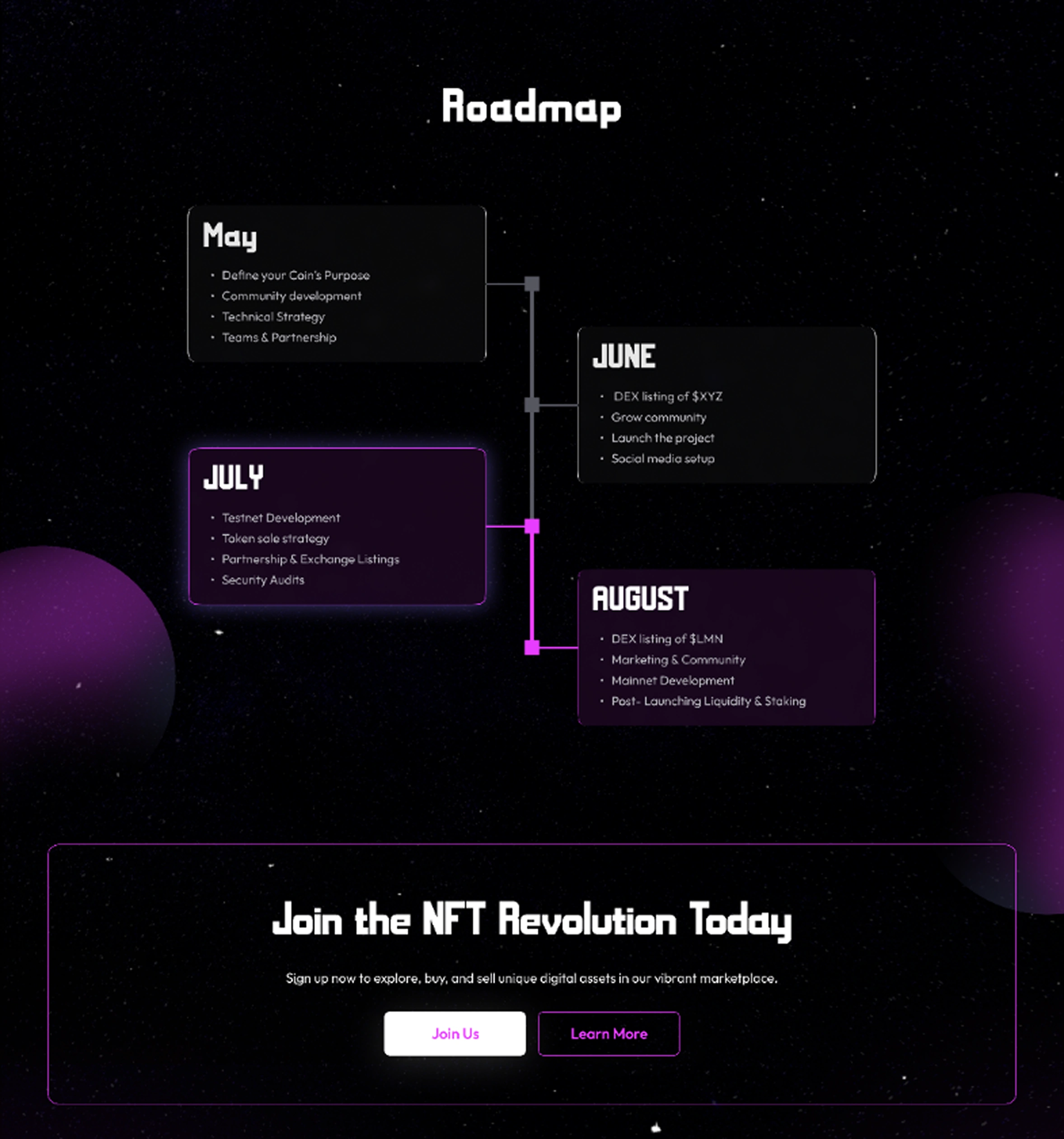 Showcasing upcoming token and NFTs launches with clear visual consistency and to a layout that clearly presents information while also feeling engaging.