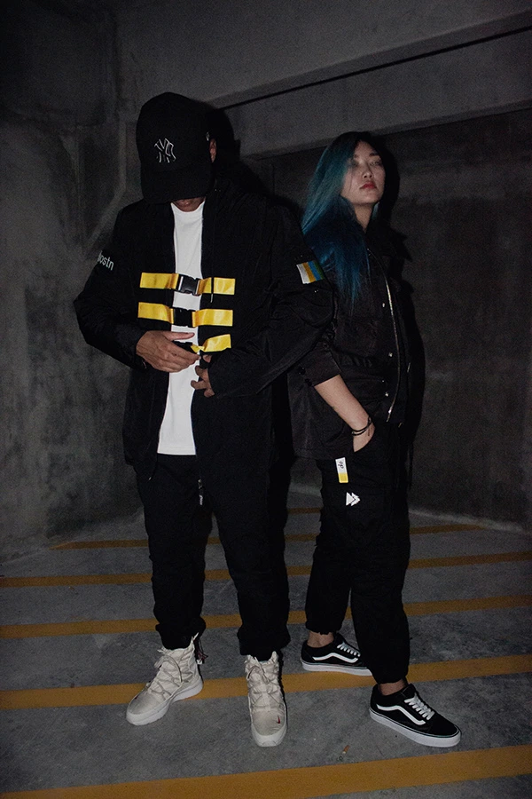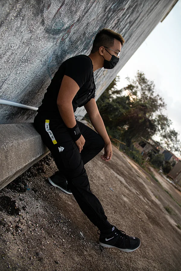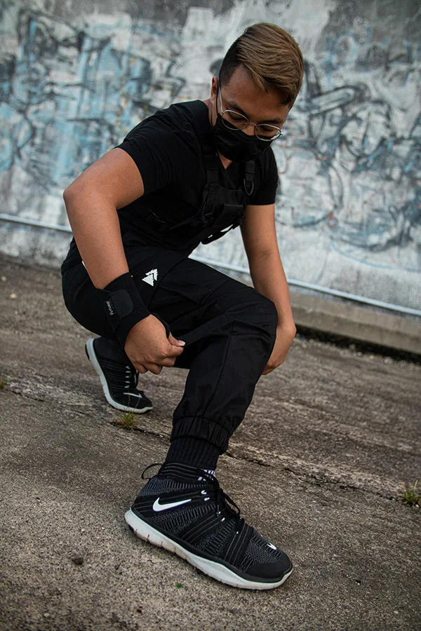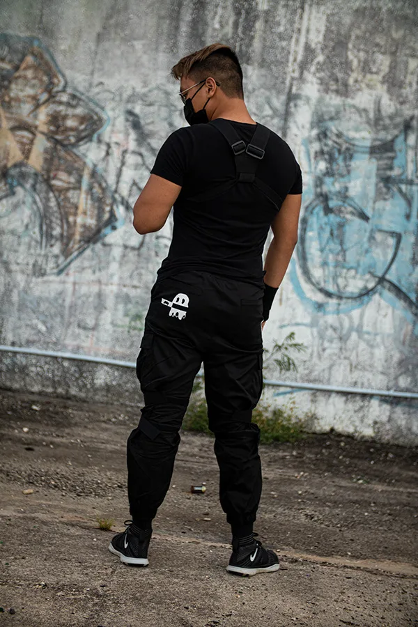The FFW Cargos were designed to complement the jacket through shared visual language and VHS iconography.