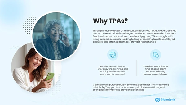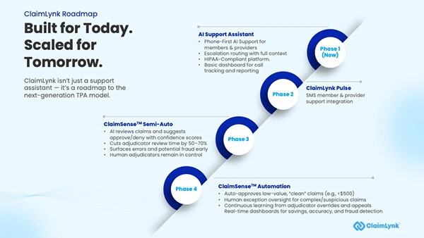 Developed a professional presentation for ClaimLynk, simplifying complex TPA support processes into clear visuals to enhance client understanding and trust.