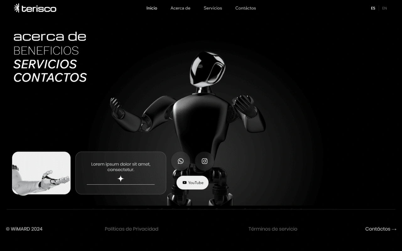 Sitio Web destinado a la industria tecnológica. Puede ser comprado como plantilla y personalizado a su gusto.