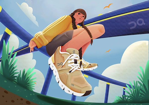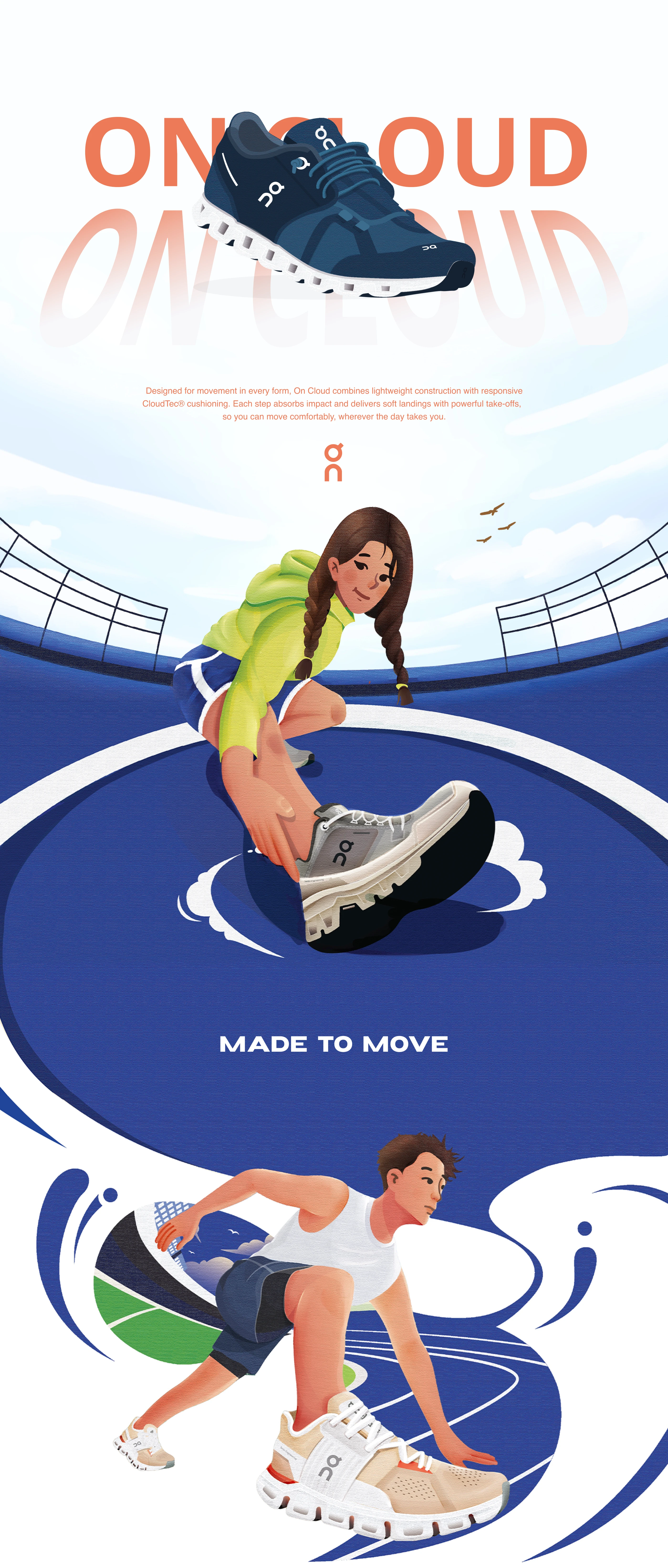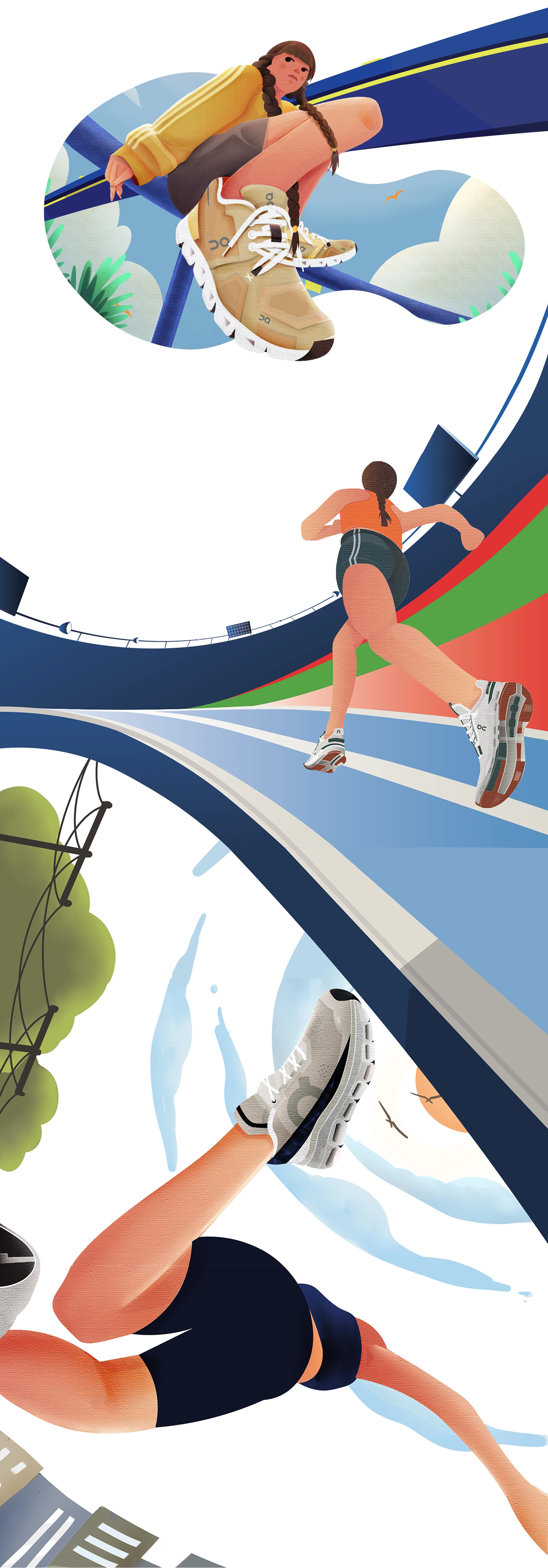 Run Your Own Pace is an illustration-driven campaign that explores how personal rhythm, pace, and movement can be translated into a cohesive visual system. Motion is expressed not through speed or performance, but as an individual experience shaped by flow and emotion. Using Cloud On running shoes as a conceptual reference, the campaign features character-driven illustrations and motion-inspired compositions designed to feel dynamic despite being static. Posture, spacing, curves, and visual momentum become the core storytelling elements.
