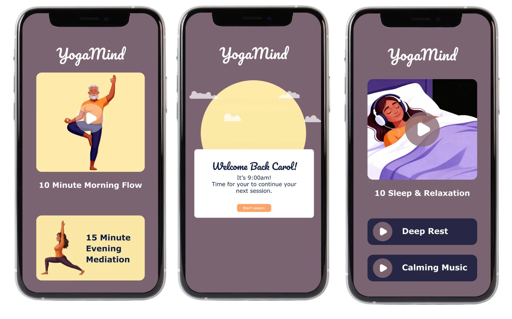 The main goal was to make yoga feel approachable and doable for everyone, especially people who think they're "not flexible enough" or "too busy" for a regular practice. The design needed to communicate that you don't need special equipment, perfect poses, or hours of free time – just a few minutes and the willingness to try. Another key objective was showcasing diversity and inclusivity, ensuring people from all backgrounds could see themselves in the app. Finally, the visual identity had to stand out in a crowded wellness market while feeling authentic and calming, not just another generic meditation app trying too hard to be trendy.