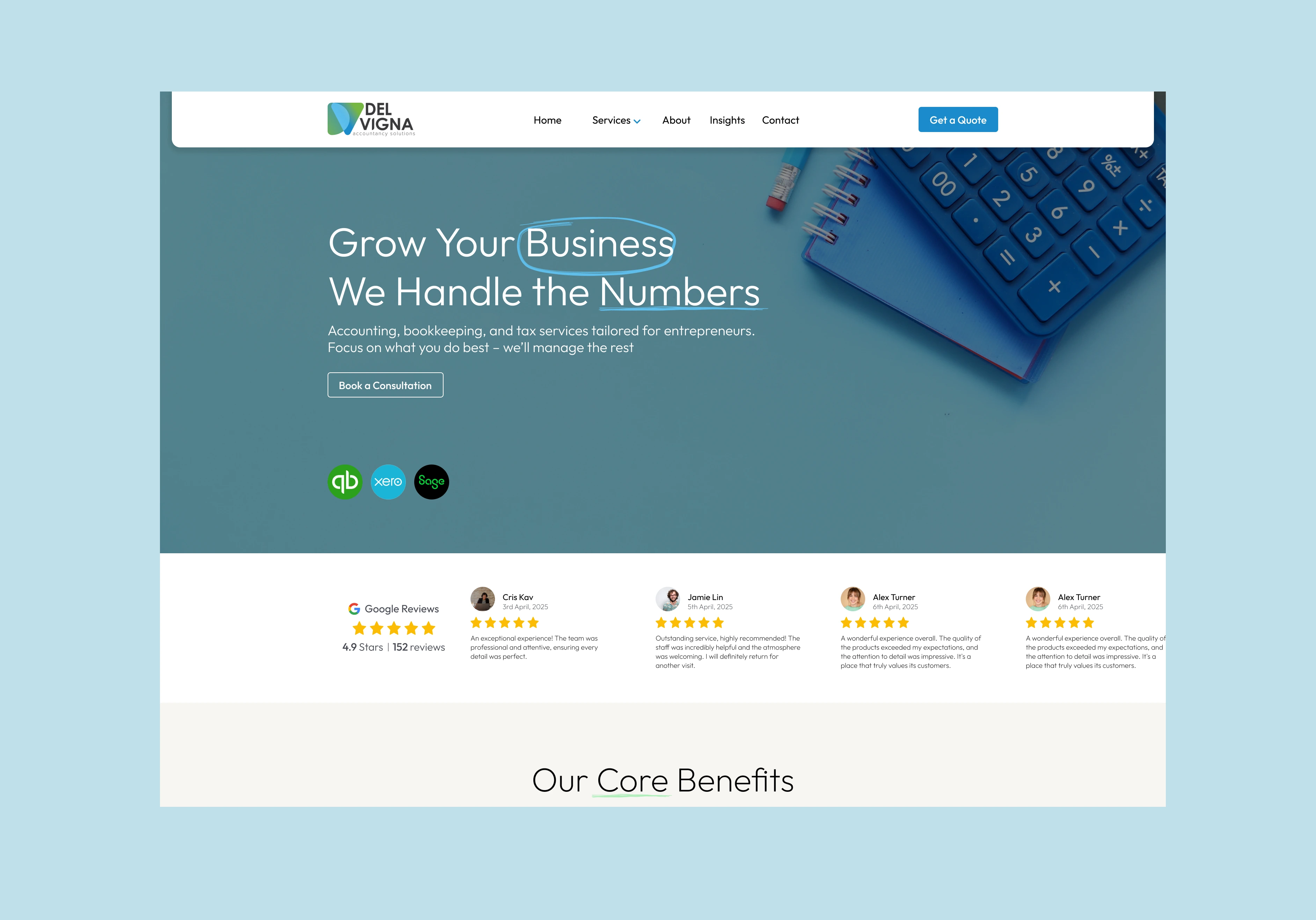 Redesigned accounting firm website with modern interface and strategic CTAs.