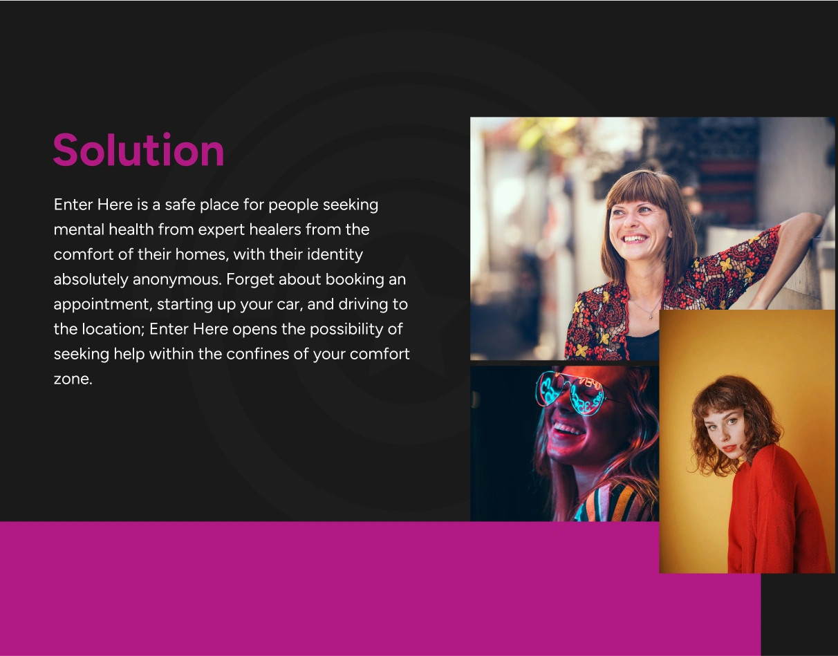 Enter Here is a safe place for people seeking mental health from expert healers from the comfort of their homes, with their identity absolutely anonymous.