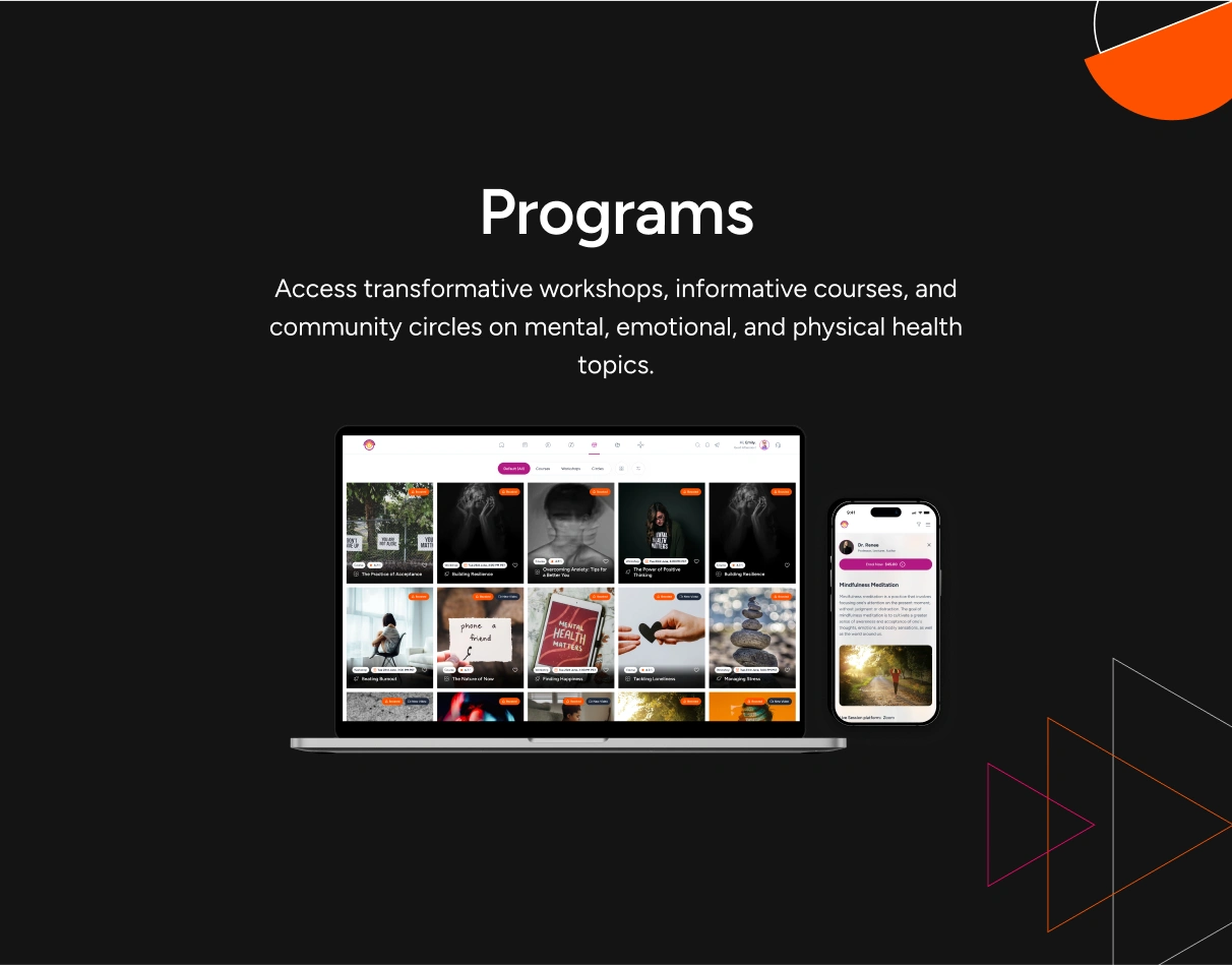 Enter Here is a transformative mental-health ecosystem designed to help individuals move from isolation to connection, healing, and long-term emotional wellbeing. The platform brings together therapists, healers, trainers, and community-led experiences in one unified digital space—offering users access to sessions, events, courses, and a supportive social environment.