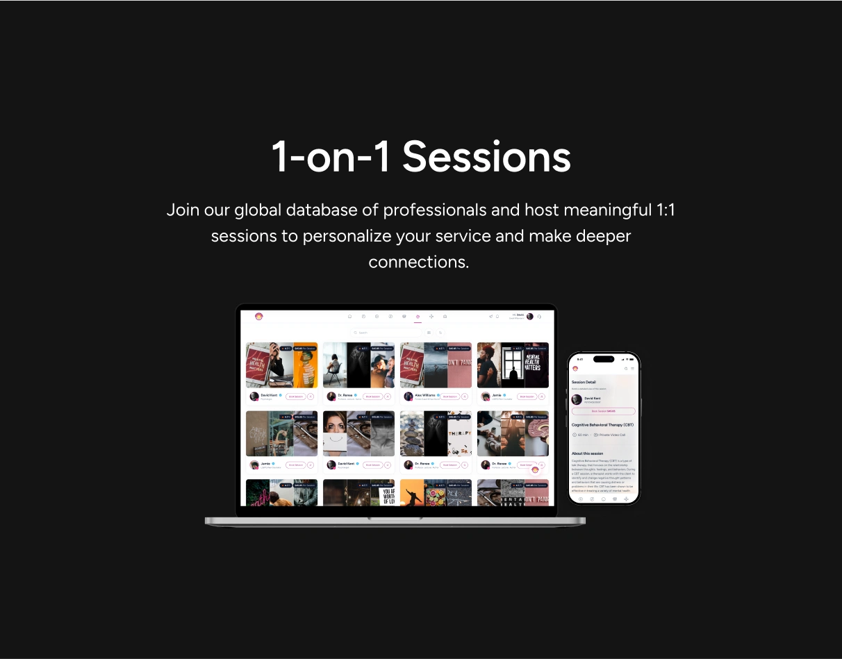 Streamlined 1-on-1 session flows with transparent scheduling and booking