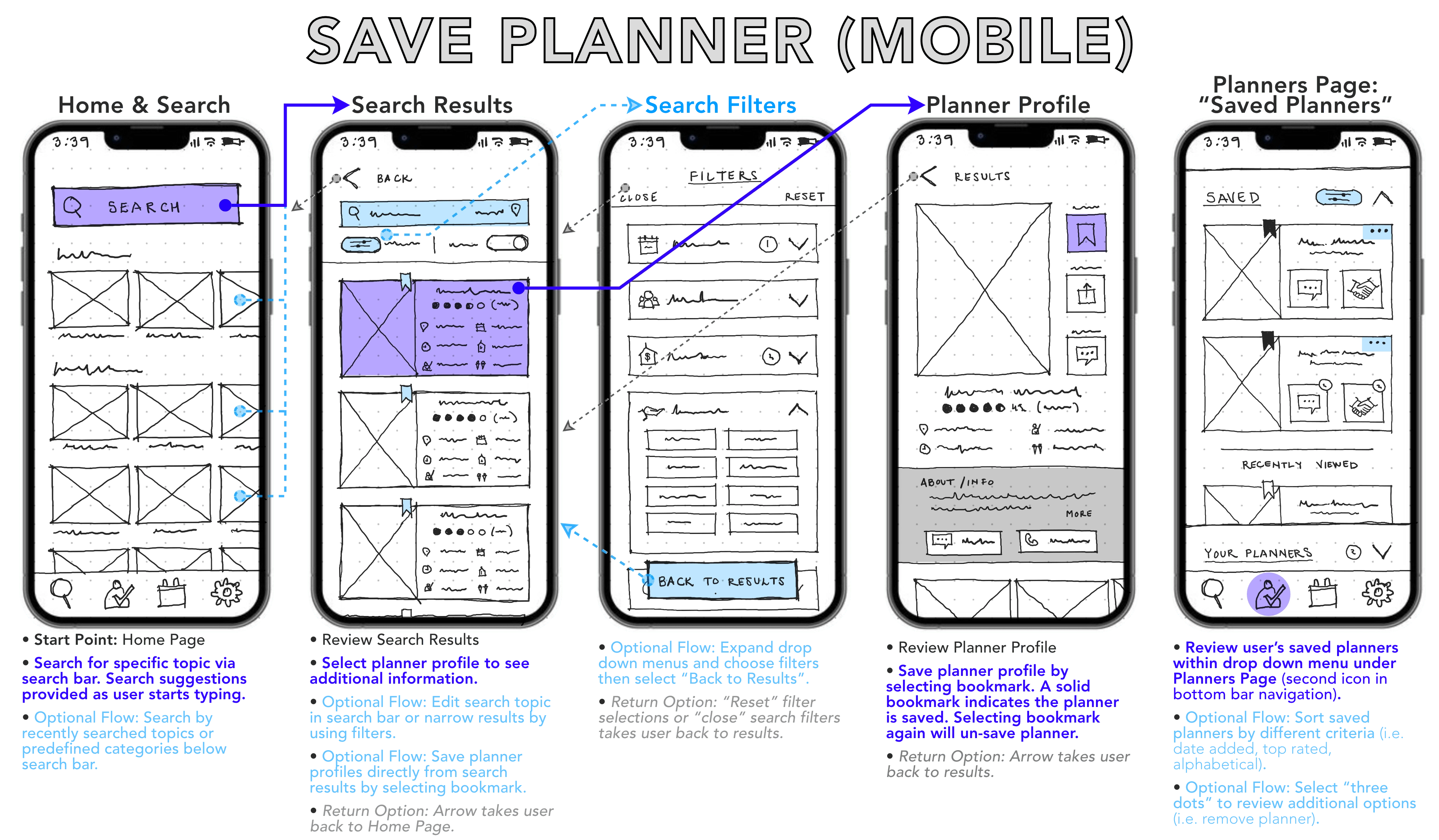 Prototyping with pencil first helped me to quickly get ideas from my brain to a physical, shareable format. It motivated me to experiment with different solutions before making any final decisions. Additionally, creating a roadmap of the design direction prior to jumping into digital tools allowed for a natural development of high-to-low level details.