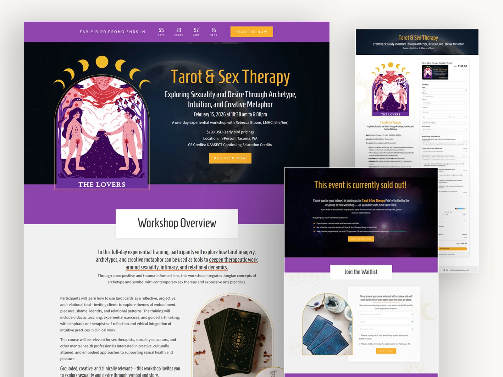 Create and configure a paid in-person workshop for Lovewell Initiatives, LLC , including an automated waitlist redirect once all seats are filled.
