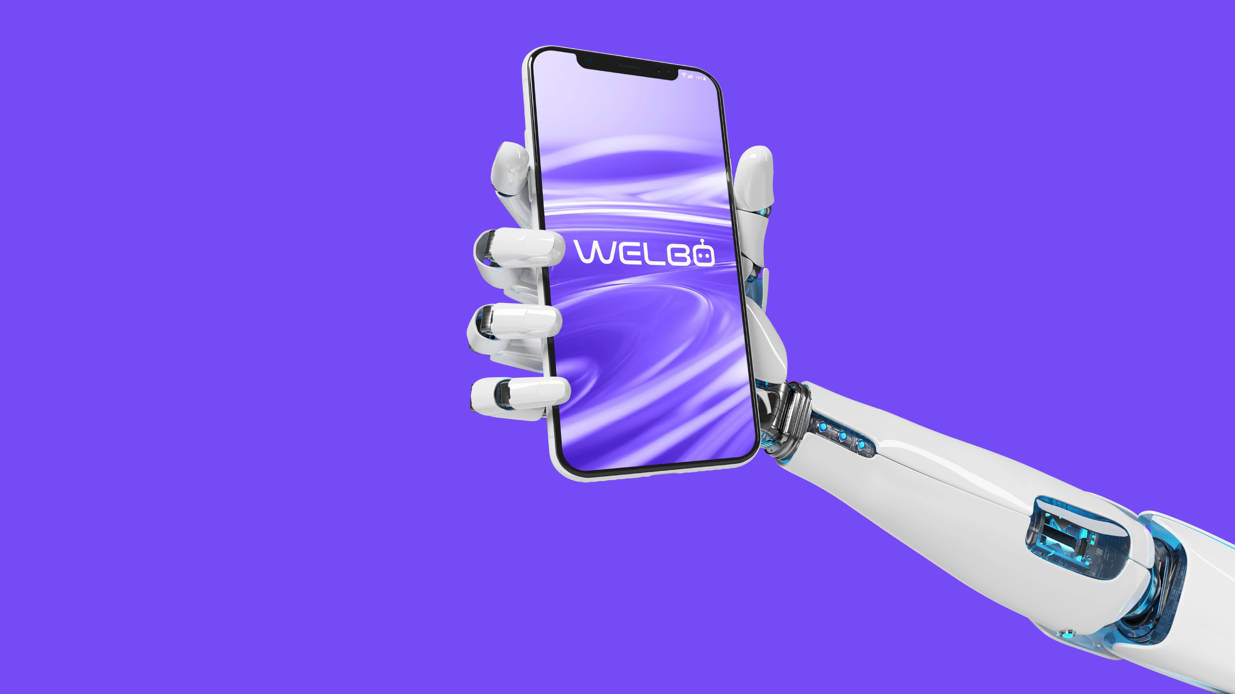 Designed WELBO’s brand identity for a robotics platform, using a friendly robot-led system, bold purple palette, and modern tech visuals to humanize automation.