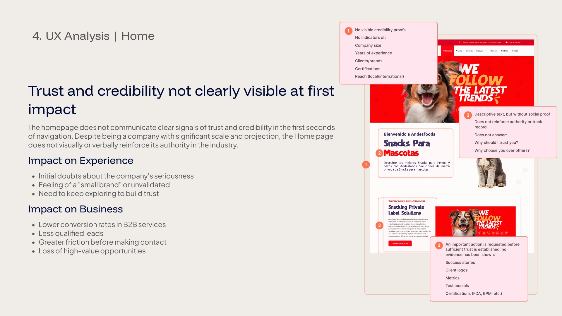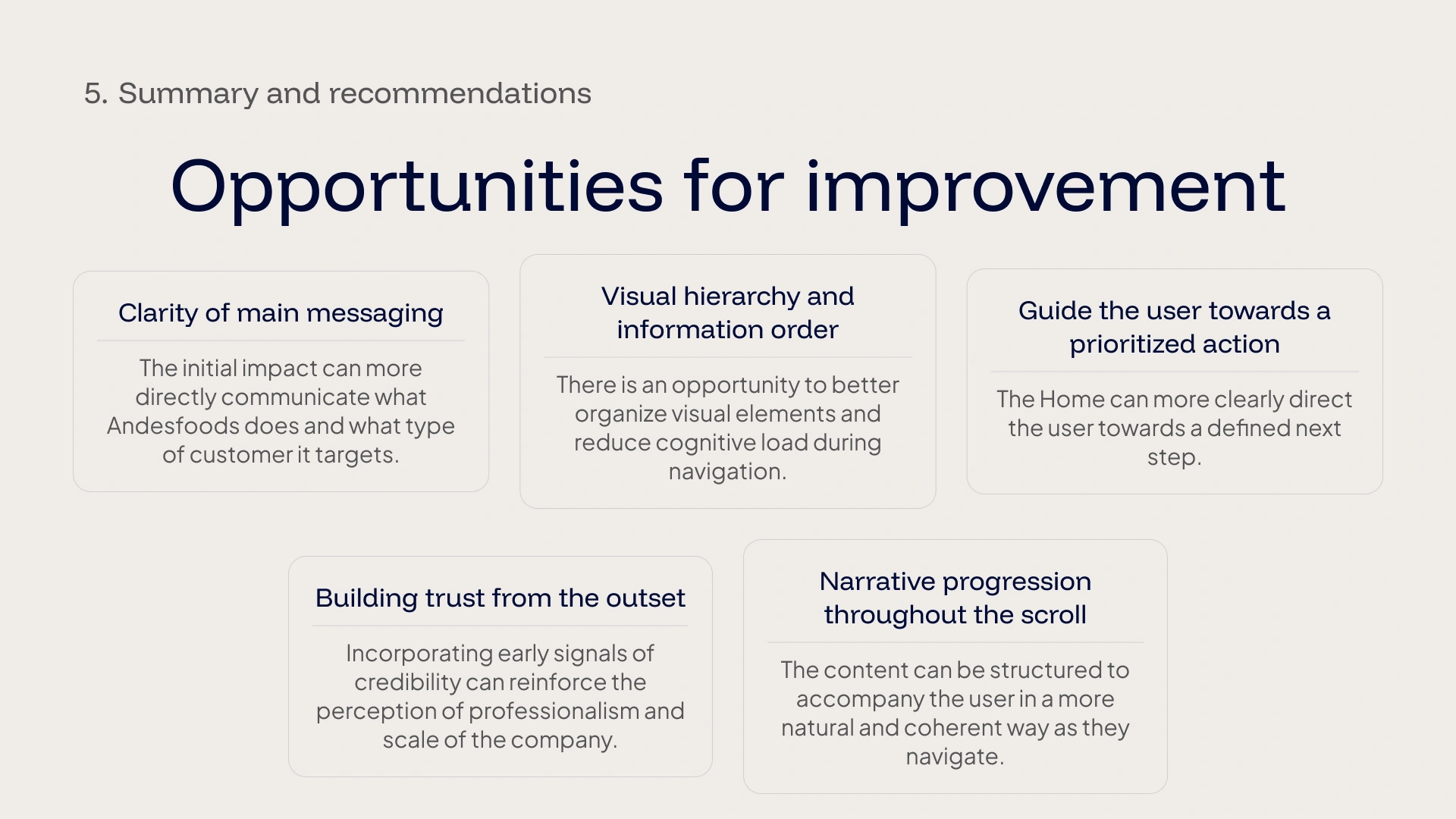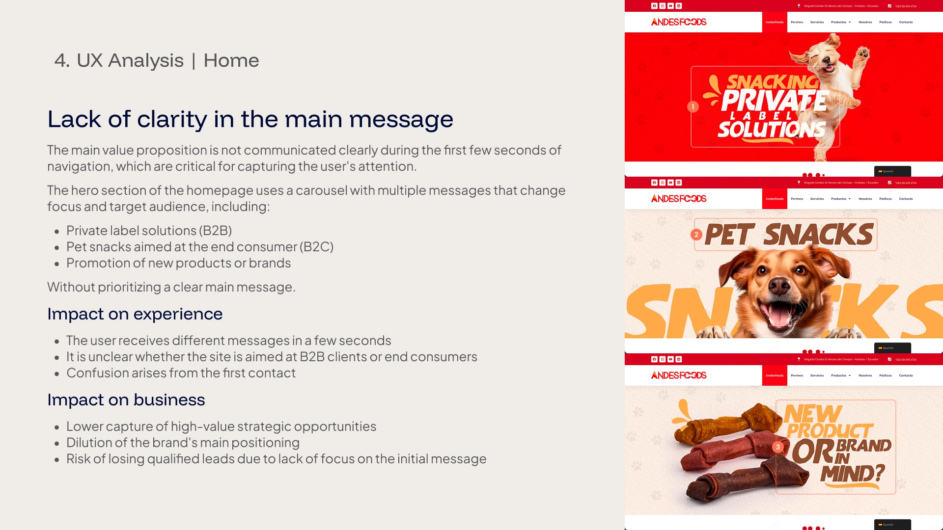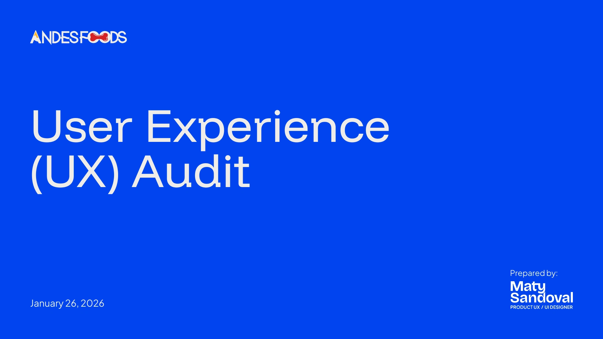 This audit analyzes the user experience of the homepage of the Andesfoods website from a strategic perspective, evaluating message clarity, structure, navigation, and conversion.