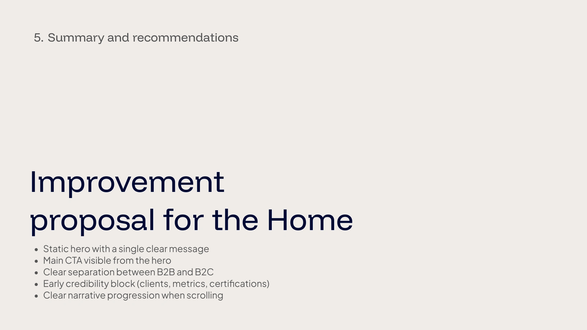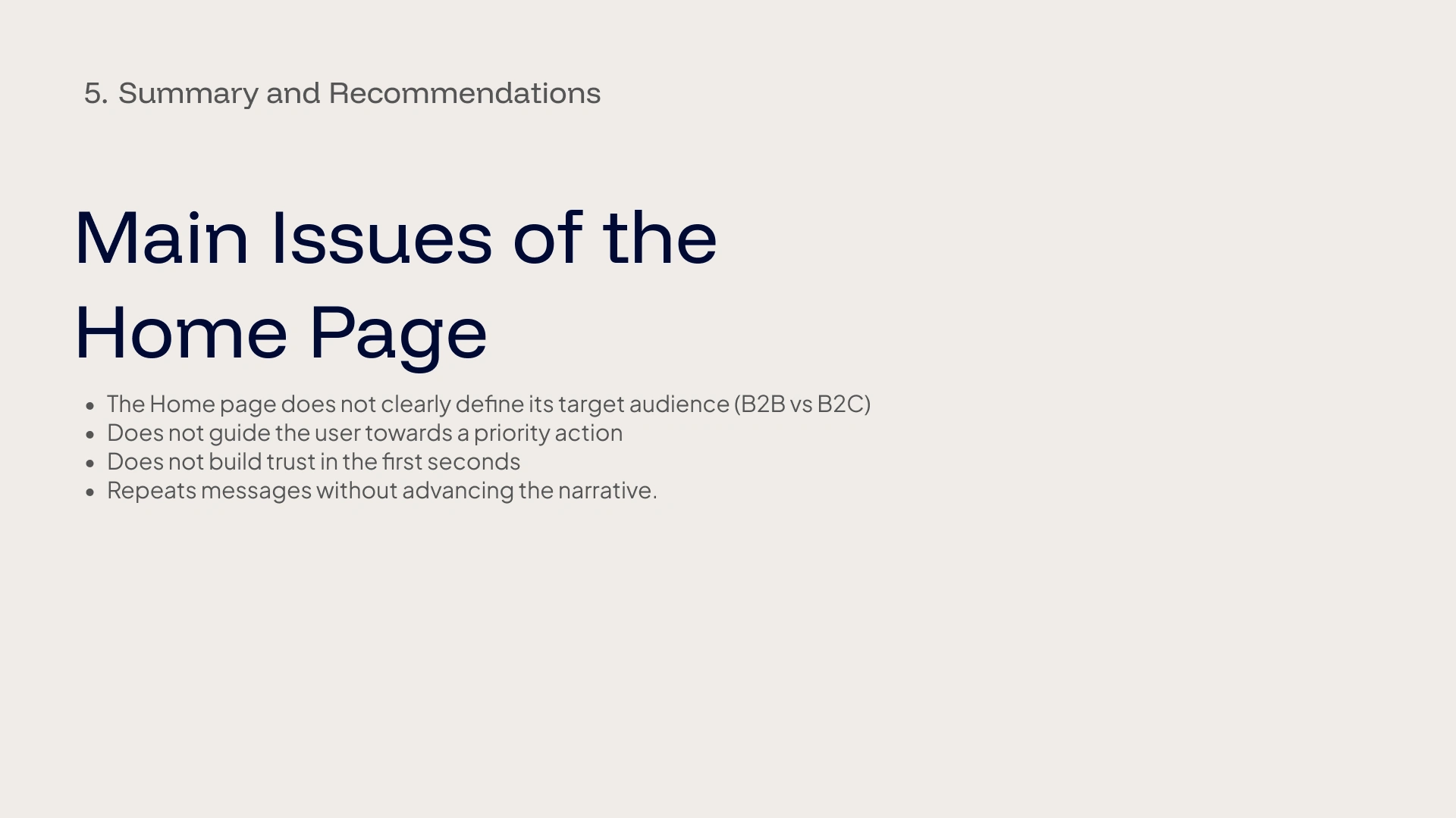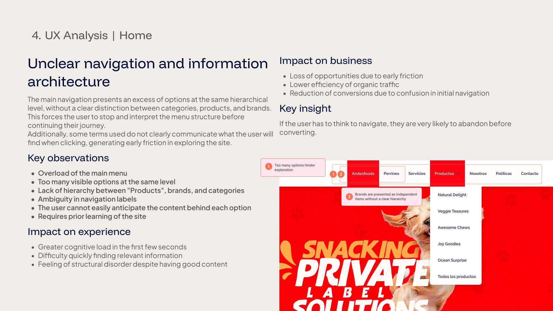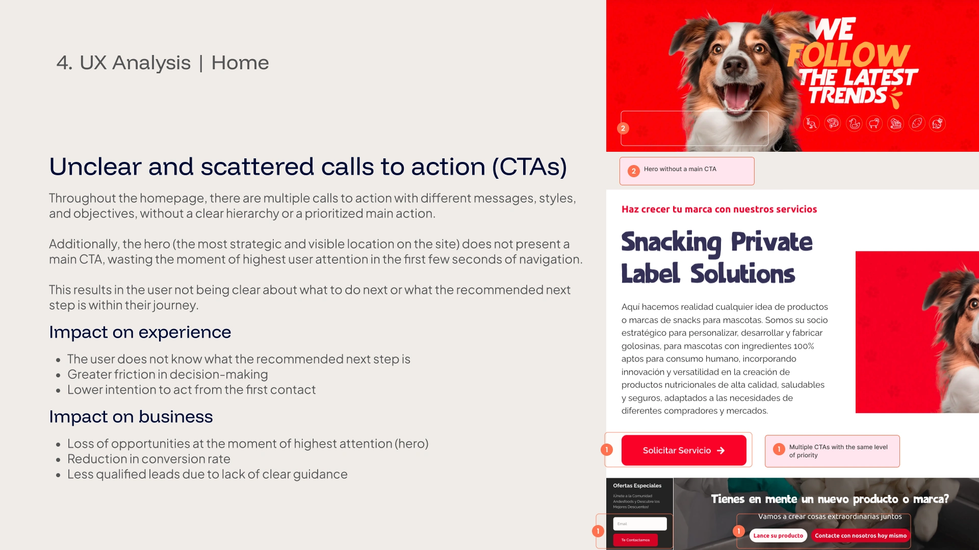 This audit analyzes the user experience of the homepage of the Andesfoods website from a strategic perspective, evaluating message clarity, structure, navigation, and conversion.