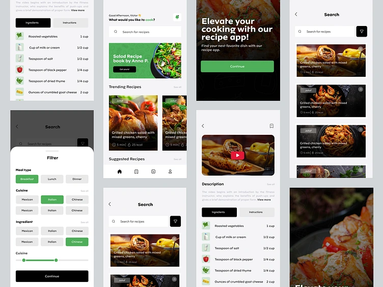 Hey there! Check out this design concept I created for a food recipe application. This app offers culinary inspiration, complete with video tutorials for hands-on learning and an enhanced search feature for easy recipe exploration.