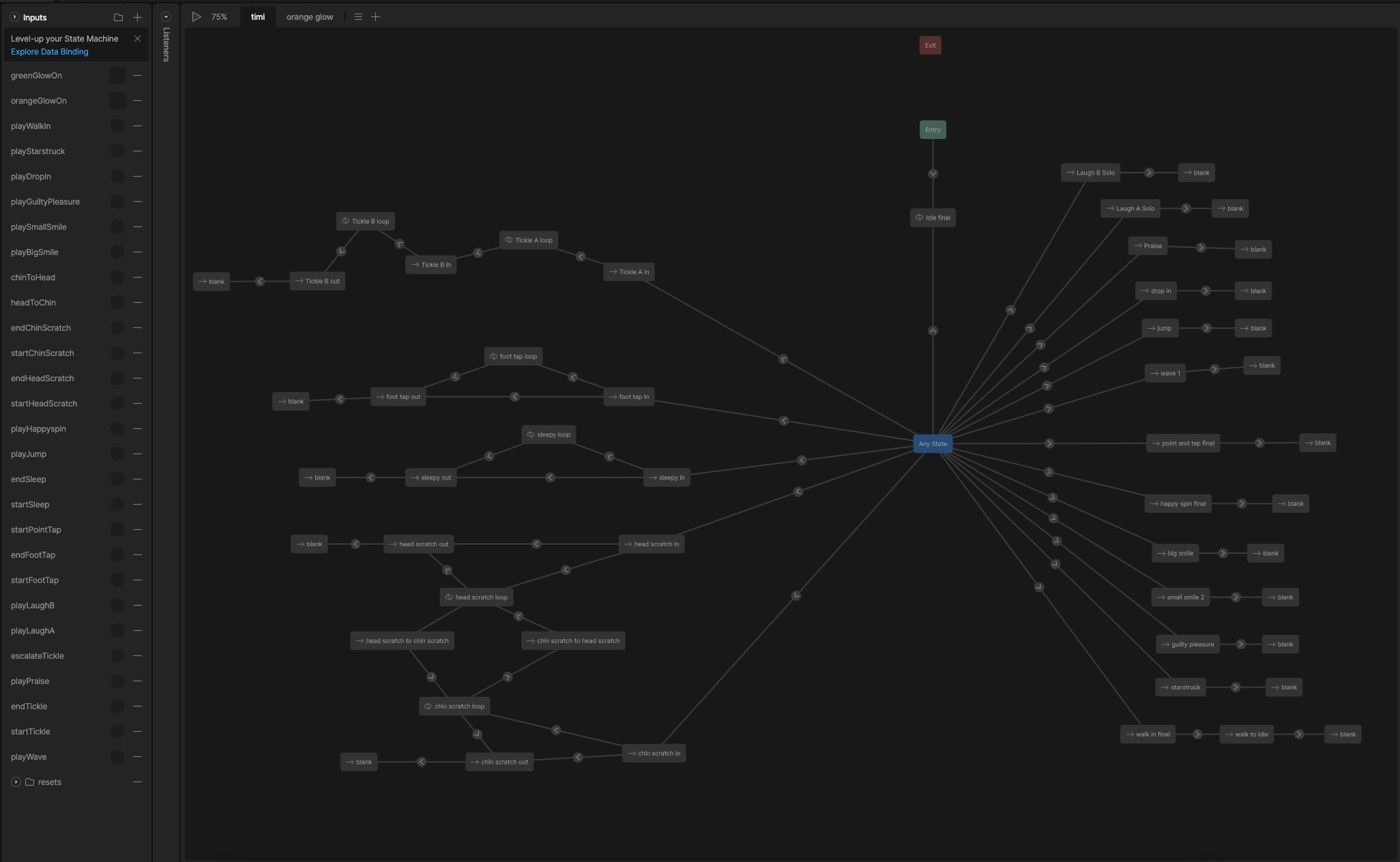 ZOE apps new mascot with rive. ZOE wanted to implement their new mascot, ziggie, with interactions that react to the users inputs. within rive i created the characters rig, developed the state machine and early transitions and character animation states. using rive meant only one file creating easy hand off to the dev team.