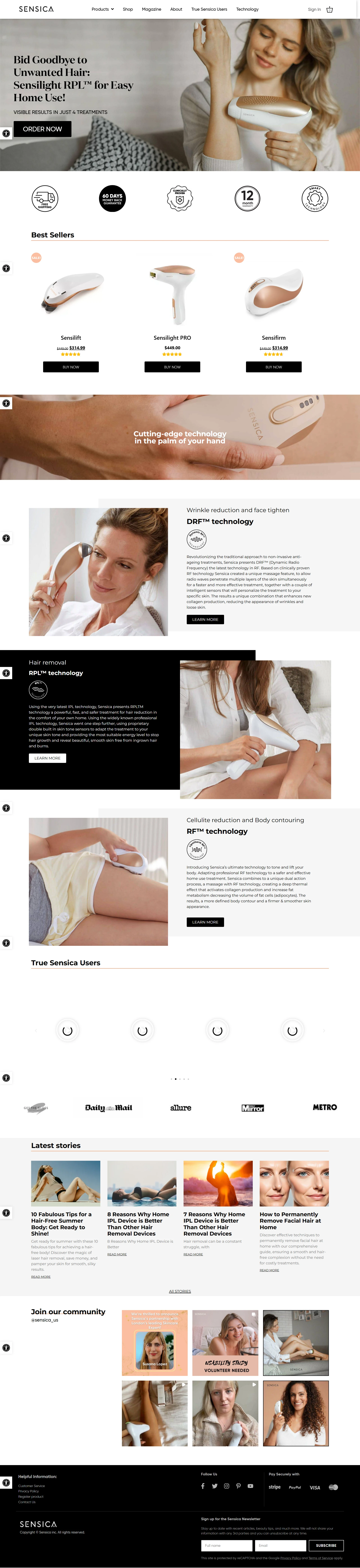 Developed a custom Shopify store for Sensica, a beauty and skincare brand offering professional aesthetic devices. Designed a sleek, modern storefront with strong visuals to highlight product innovation and clinical credibility. Built custom product pages with detailed specifications, upsell opportunities, and subscription options. Enhanced mobile responsiveness and checkout flow to improve conversion rates. Integrated SEO best practices, promotional banners, and multilingual functionality for international customers.