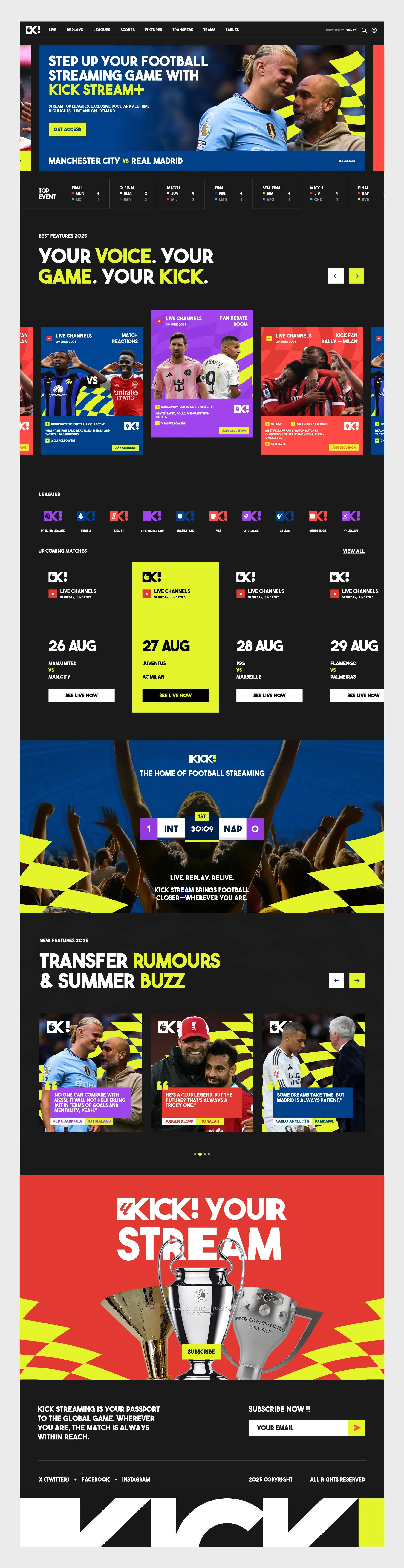 Kick! delivers a modern, fan-first digital experience that bridges the gap between streaming and community. It’s not just about watching football — it’s about living it online.