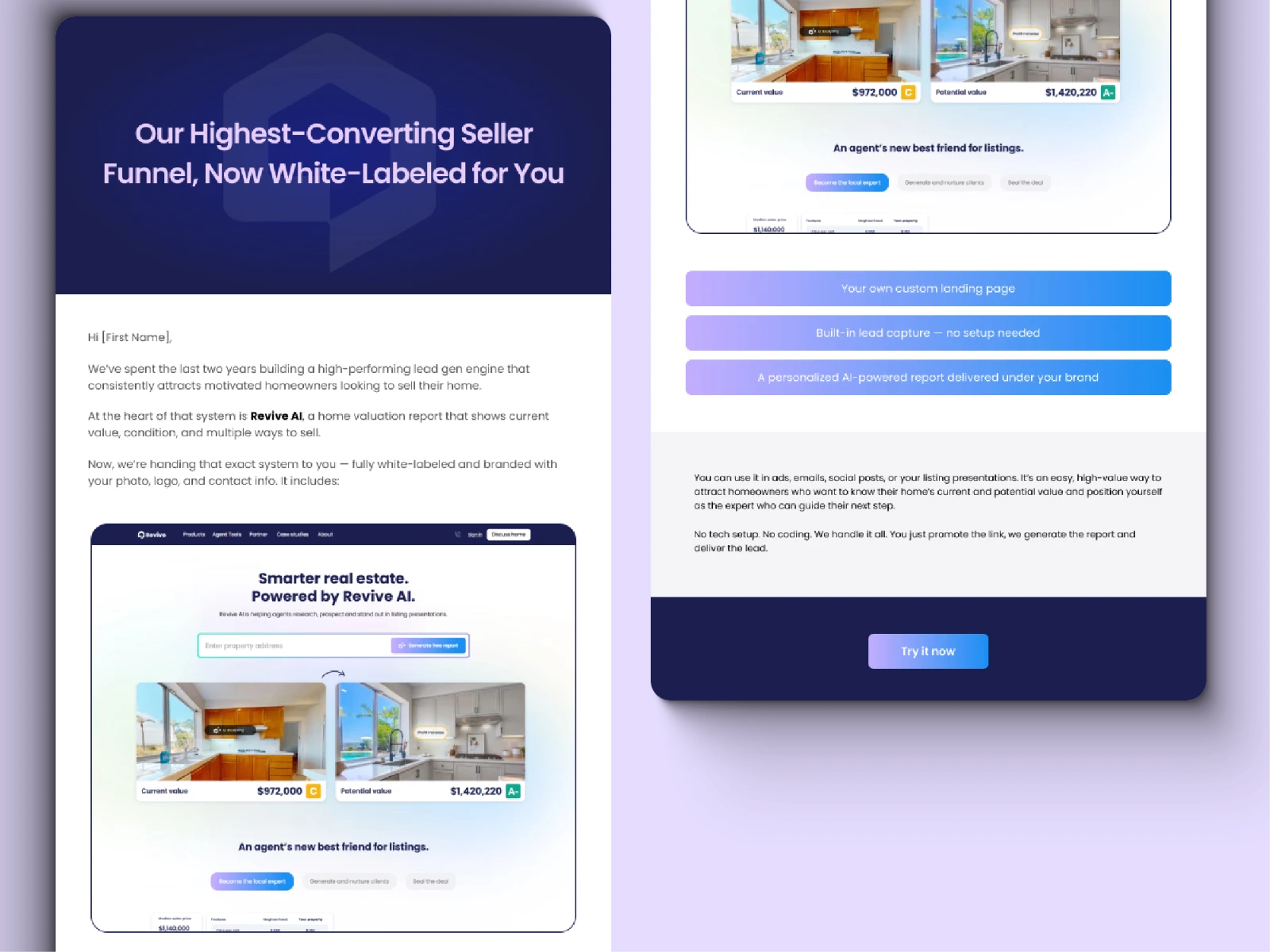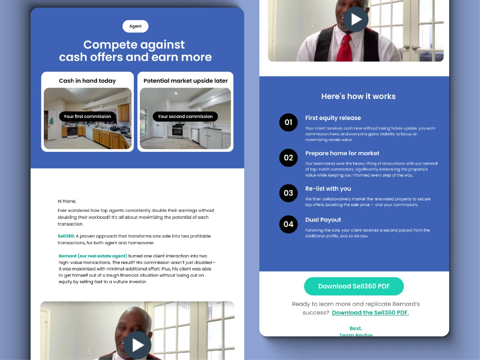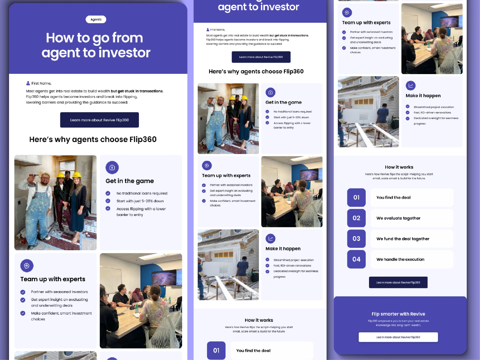 Revive Real Estate partnered with me to design a series of high-converting email campaigns aimed at promoting their core offerings and driving qualified leads, engagement, and brand awareness. The goal was to create visually compelling, on-brand email designs that clearly communicated value while supporting Revive’s broader growth and acquisition strategy.