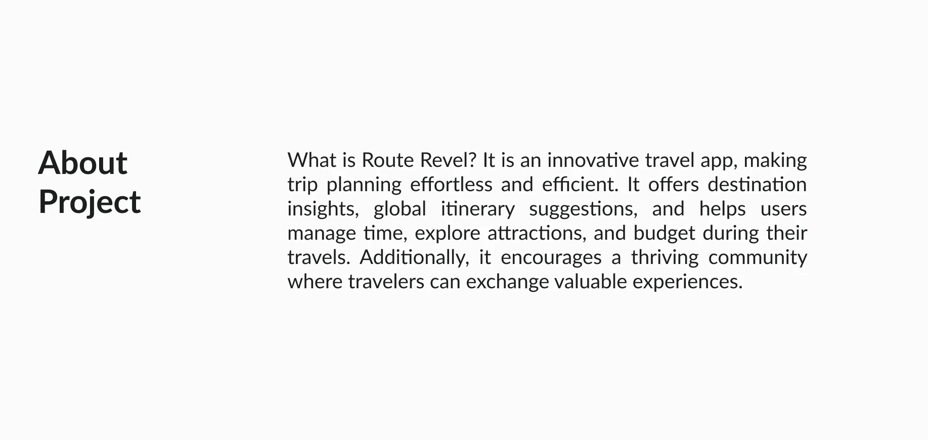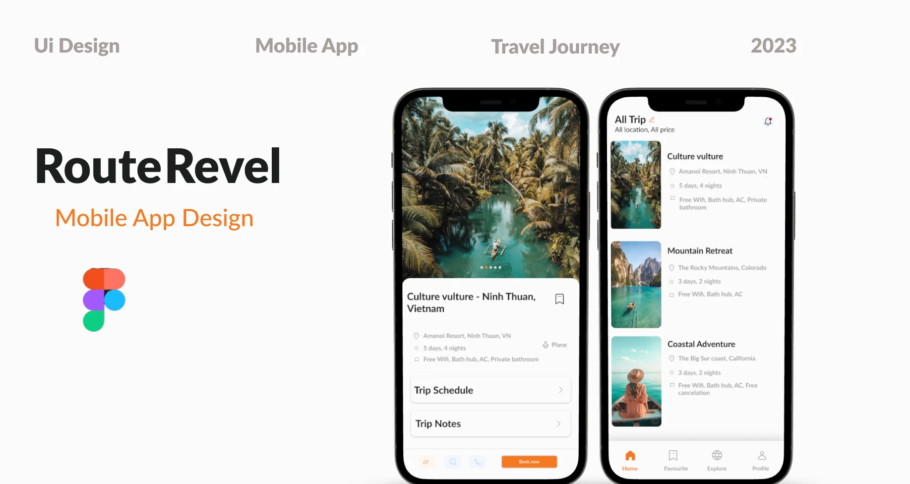 stunning UI design screen for the Route Revel trip travel app.