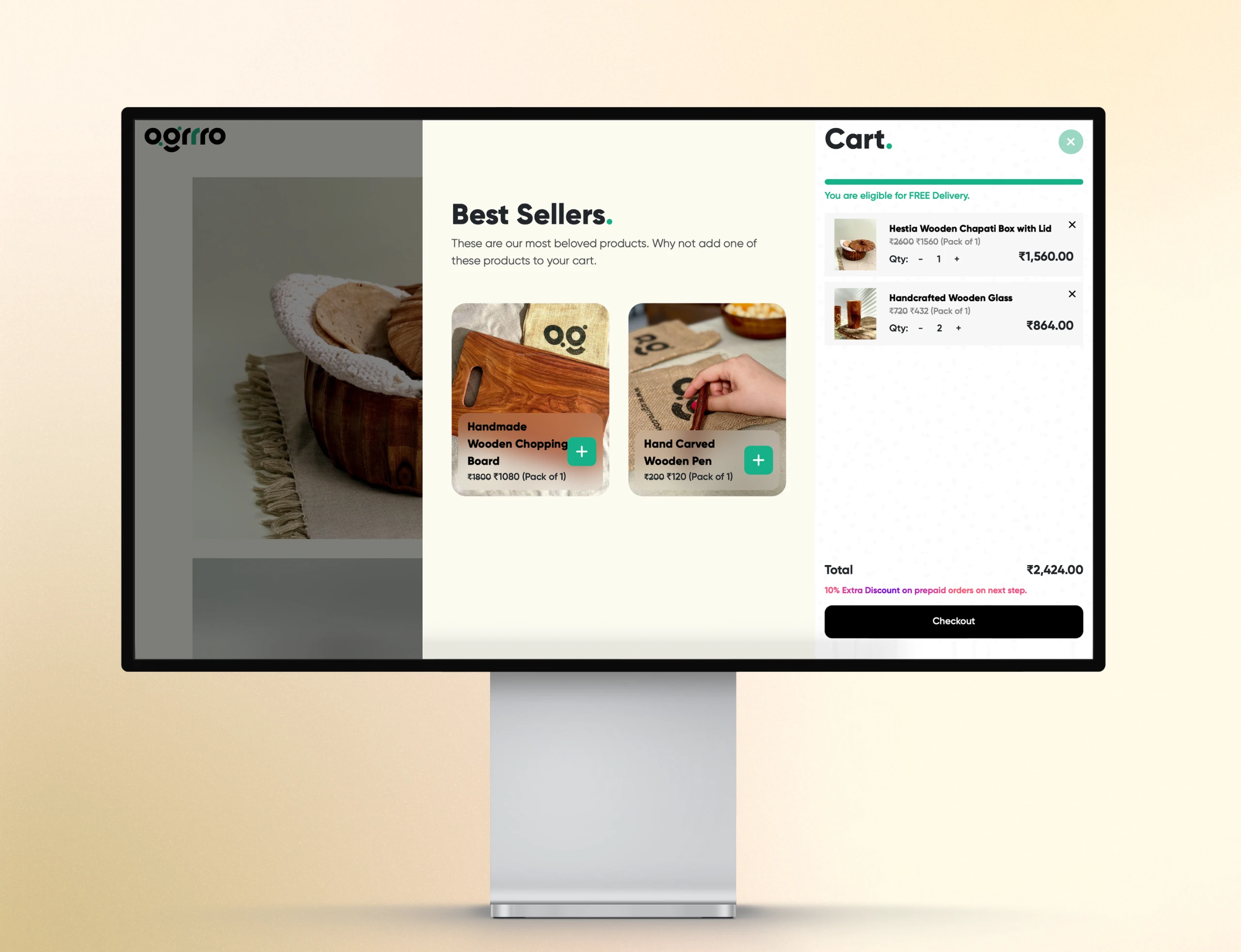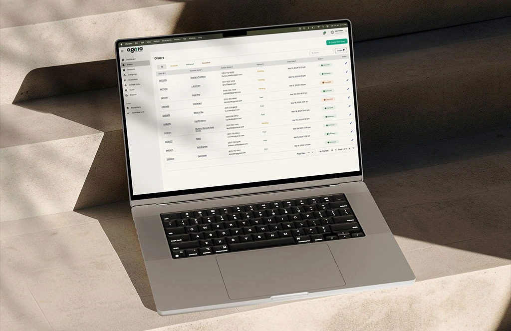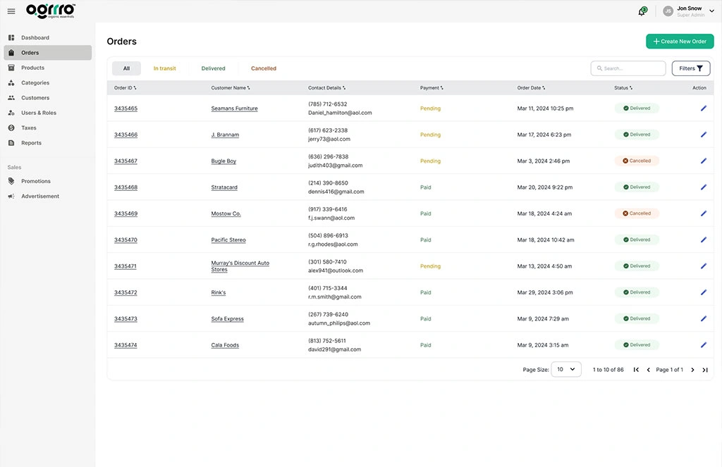 The product management module enables the addition, editing, and removal of products, including high-quality images, descriptions, pricing, and stock levels. The order management system provides real-time order tracking, automatic status updates, and invoice generation. Customer management tools allow Agrrro to track user activity, manage queries, and offer personalized support.