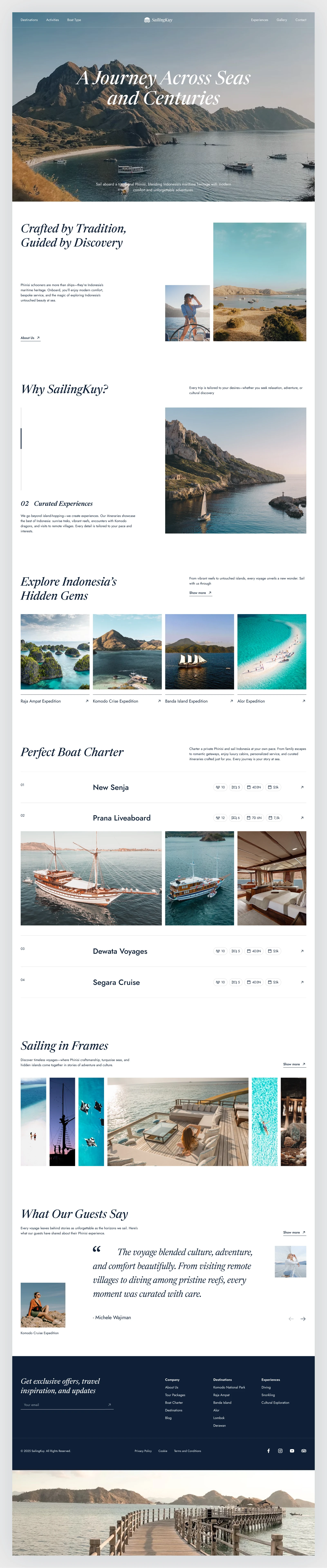 Presenting Sailingkuy a modern travel platform crafted for those who chase waves, sunsets, and remote islands. This design highlights sailing itineraries across Indonesia’s most iconic destinations — from Komodo to Raja Ampat. What do you think? hope you love it.