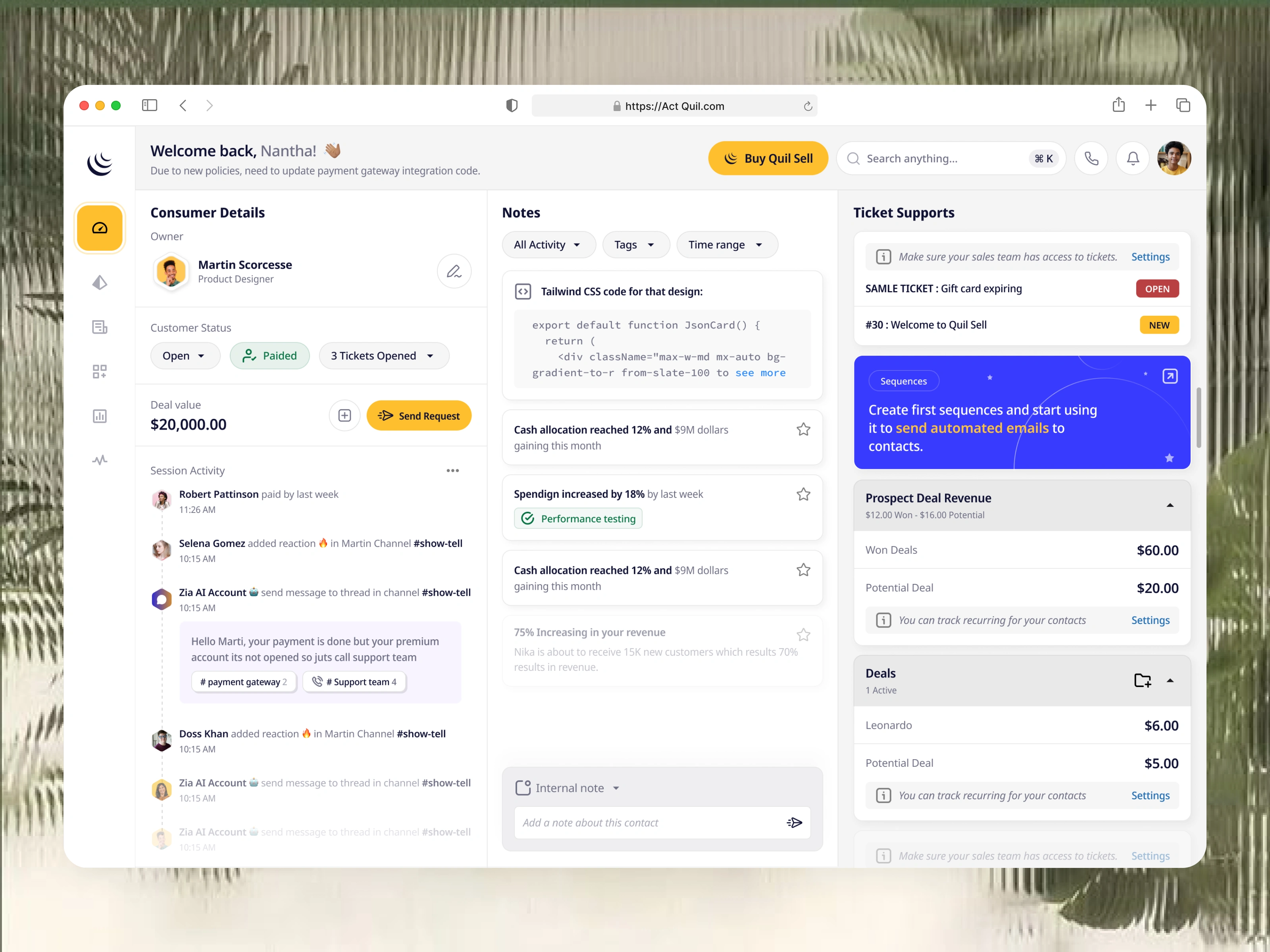 Act Quil is an all-in-one CRM platform designed to bridge the gap between sales, support, and development teams. The goal was to create a "360-degree customer view" that consolidates communication history, financial deal values, and technical notes into a single, high-efficiency interface.