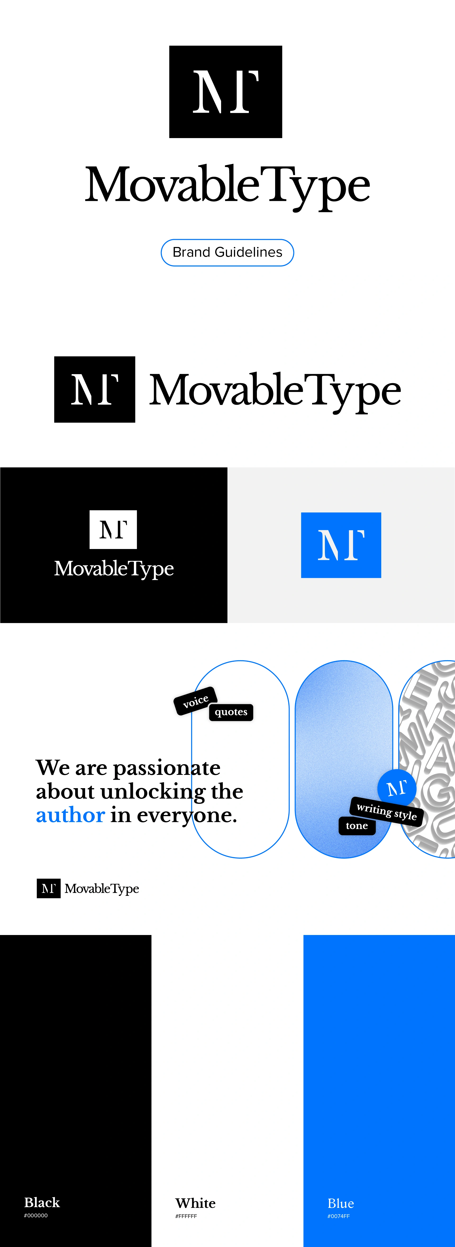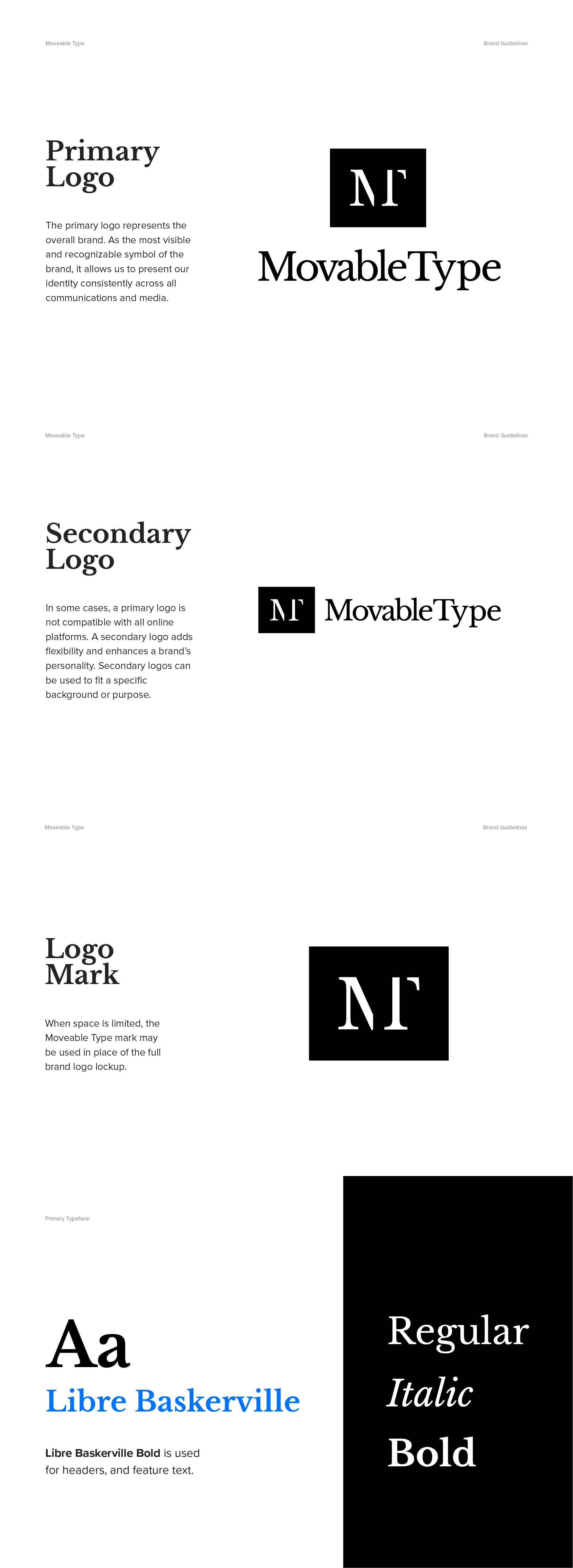 The creating the MovableType brand guide, my primary focus was to establish a cohesive and visually compelling brand identity that reflects the essence of the company.