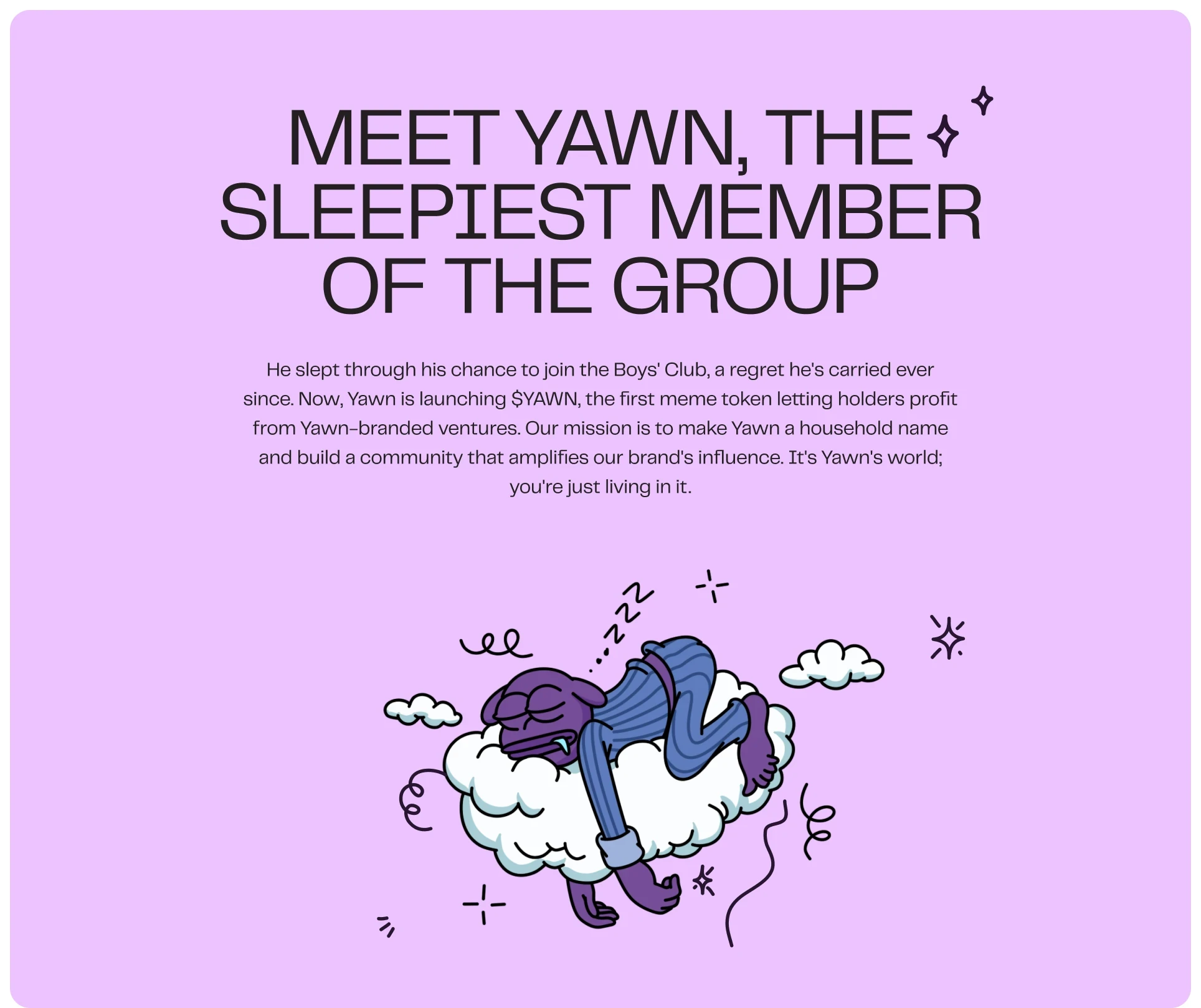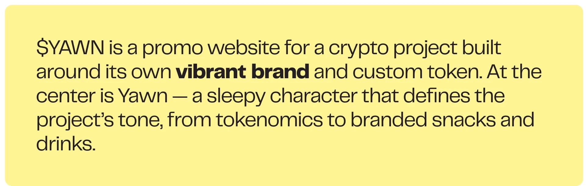We created a scroll-friendly, character-driven promo site for $YAWN — a Web3 project that wanted to ditch the usual dry crypto tone.Our goal was to design an e…