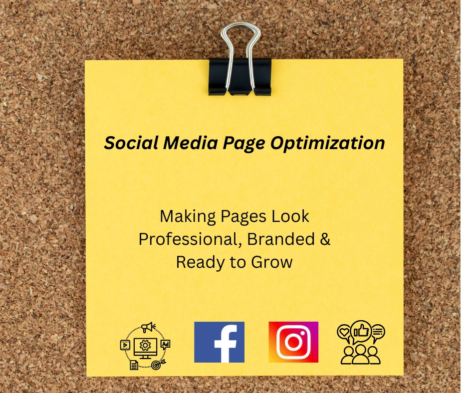 "Clean and professional cover showing optimized Facebook and Instagram pages with updated bio, CTA, and branding elements."