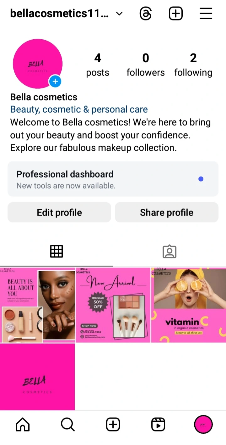 This project showcases the complete optimization of an Instagram page for a makeup brand — including a compelling bio, branded highlights, profile photo, and optimized CTA. The goal was to create a clean, professional, and on-brand look that attracts beauty lovers and boosts engagement.