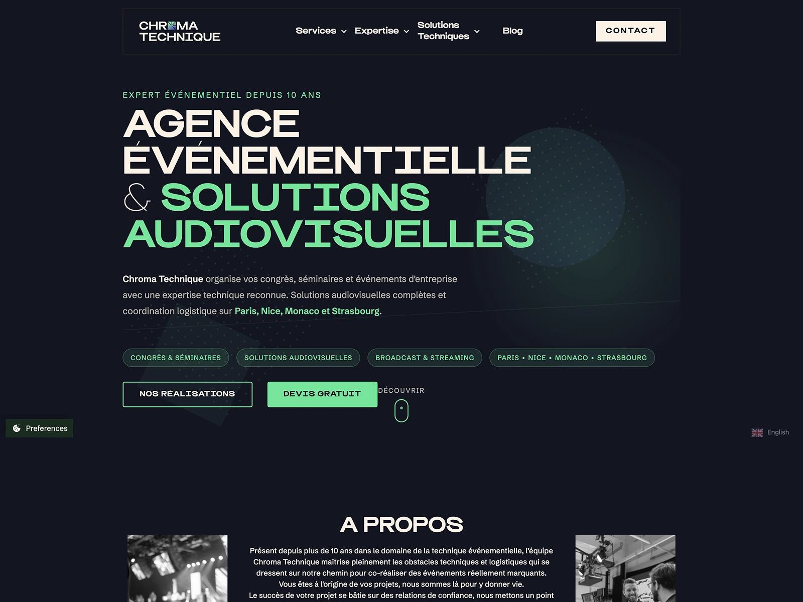 Chroma Technique is a French audiovisual and event production agency. I was brought in to audit and rebuild their existing Webflow website, which combined AI-generated code and native Webflow blocks. The goal was to improve technical SEO, UX consistency, and site structure while making the platform easier to scale and maintain.