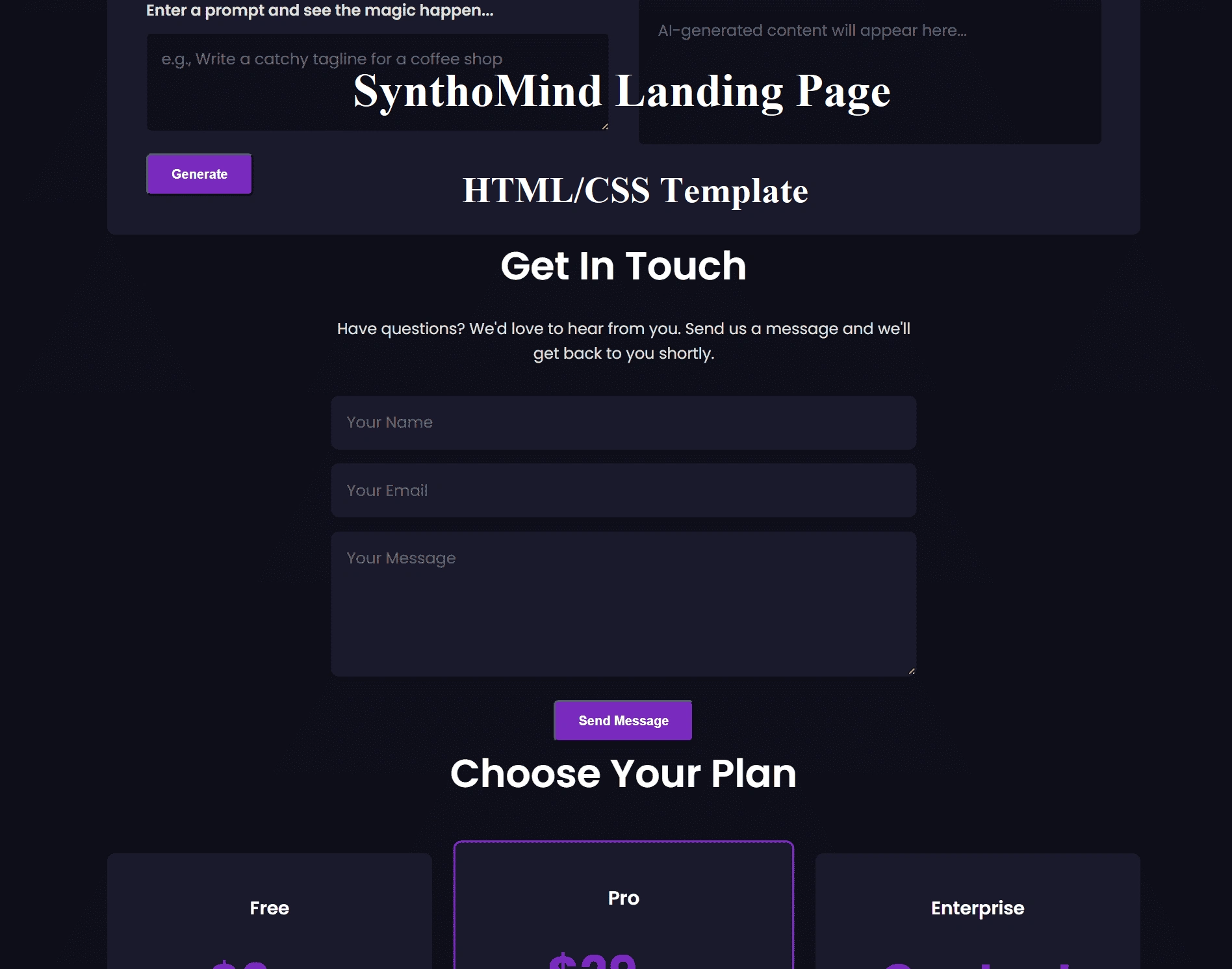 Developed SynthoMind, a landing page template for AI & SaaS using Next.js and Tailwind CSS.
