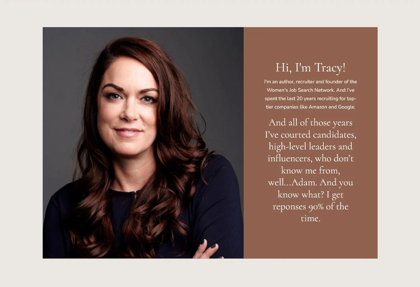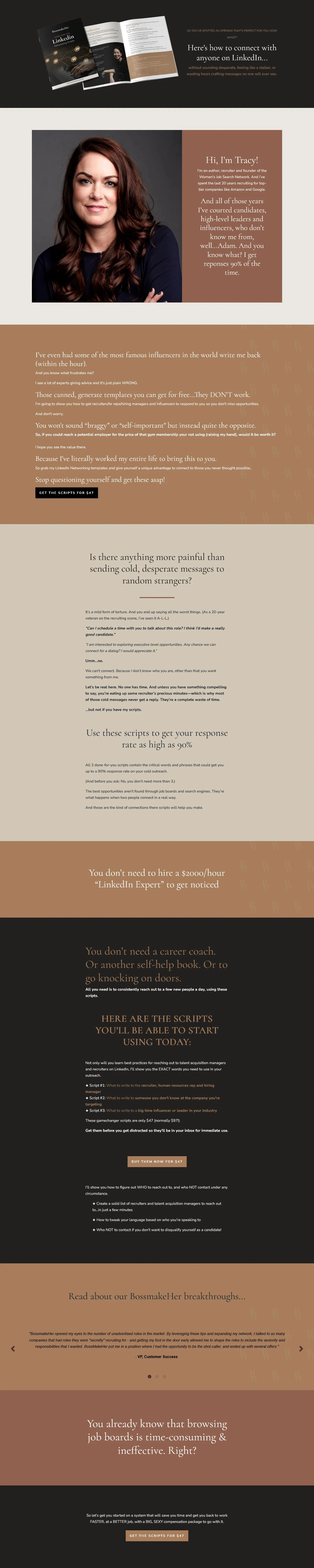 I created a Kajabi landing page, incorporating Tracy's brand colors and custom fonts. The page is a thoughtful fusion of brand colors, fonts, strategic layout, and engaging visuals for Tracy. This design seeks to captivate the target audience, boost conversions, and create a lasting impression in harmony with Tracy’s distinctive brand identity.
