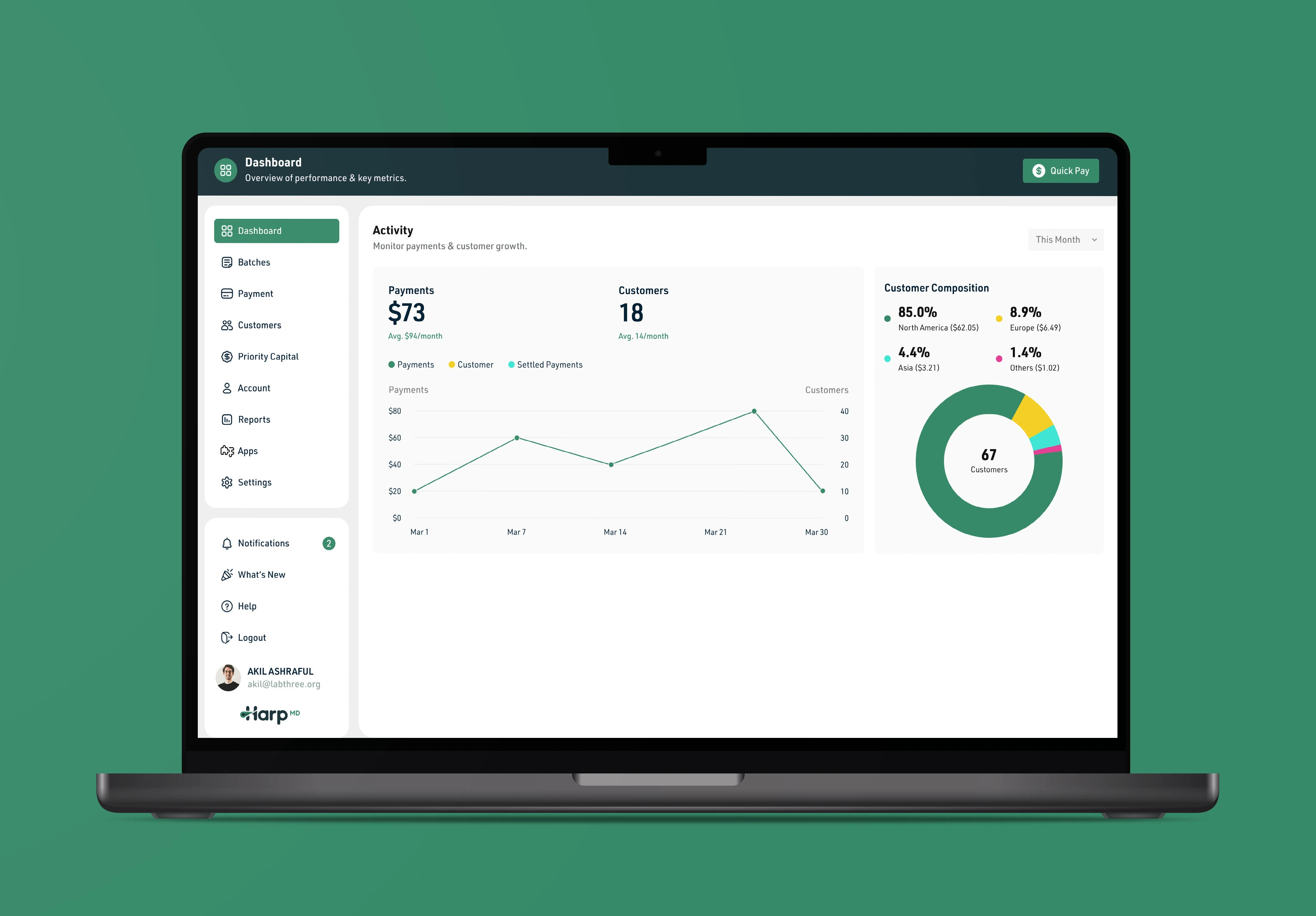 ✔ Context-aware header providing clear page purpose with persistent Quick Pay access