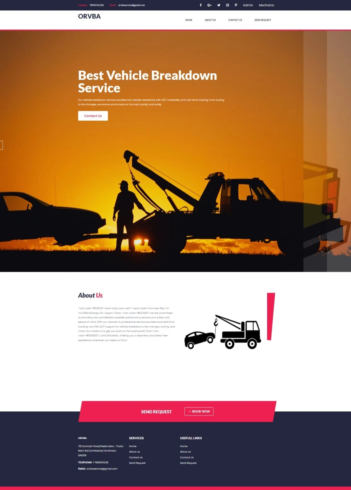 I have created a project called on road vehicle breakdown assistance it's a web-based application that provides services to users experiencing mechanical issues of their vehicle in remote areas.