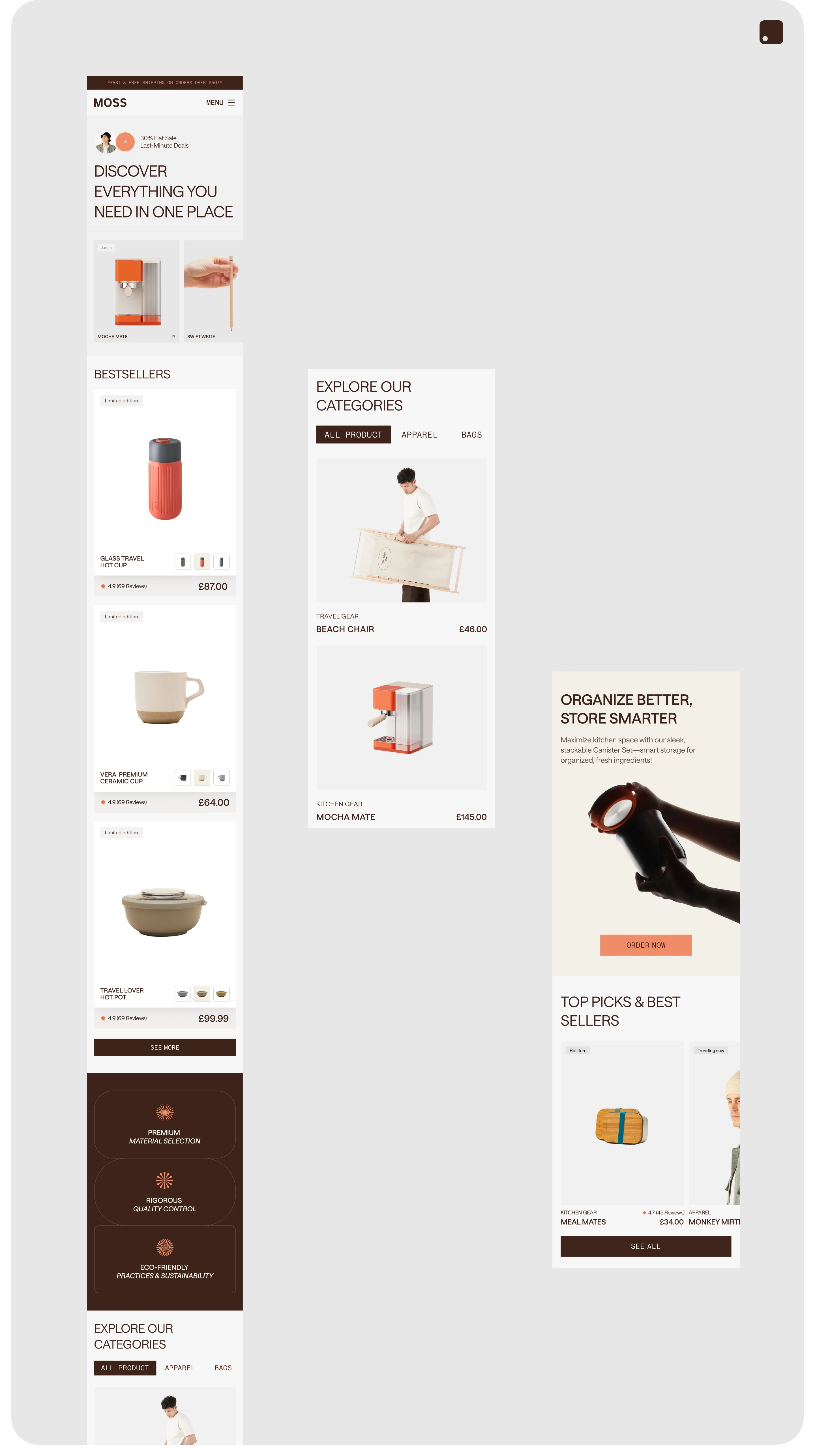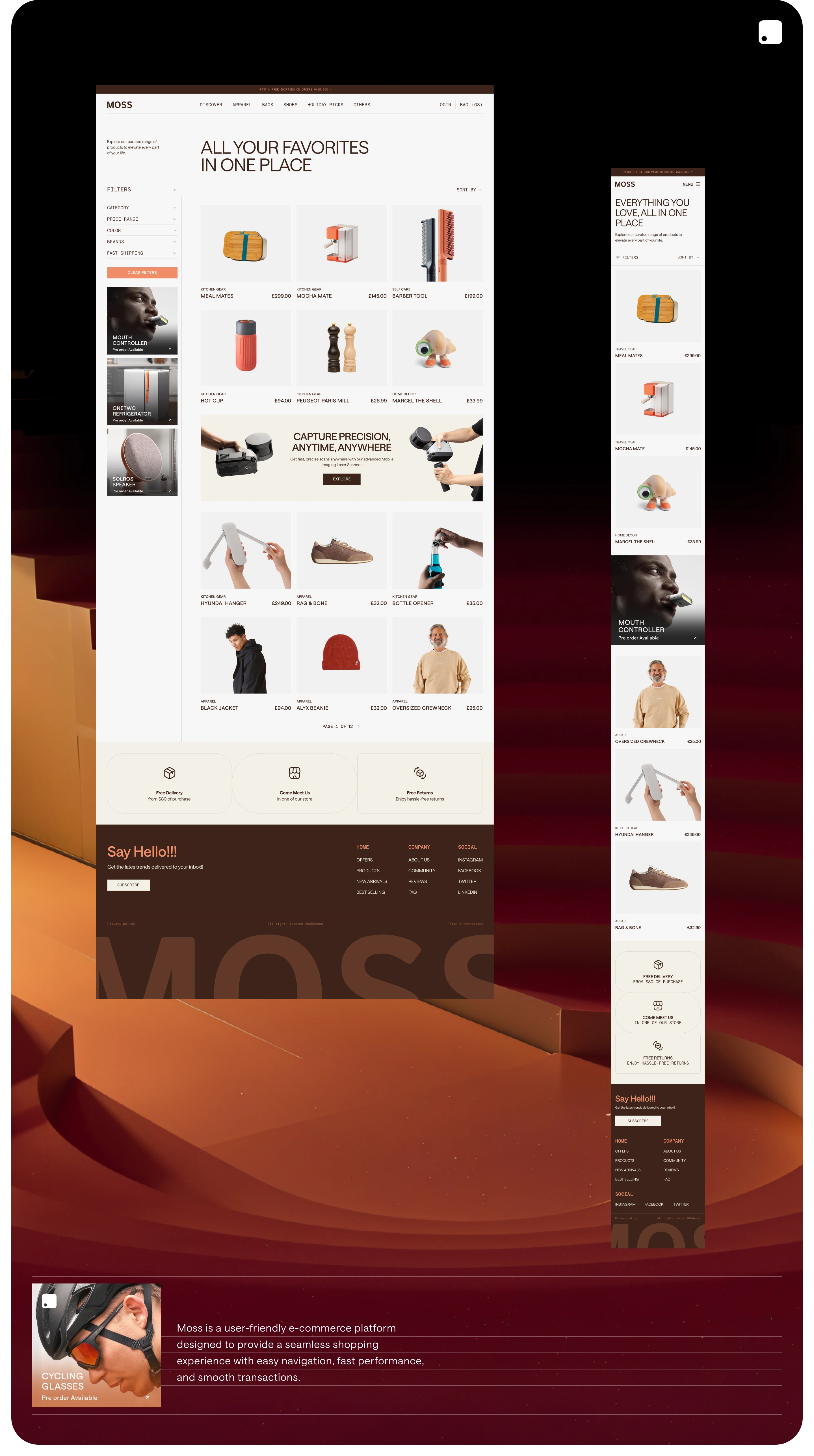 Experience the future of shopping with Moss — a sleek, responsive e-commerce platform offering seamless UX and modern UI across all devices.