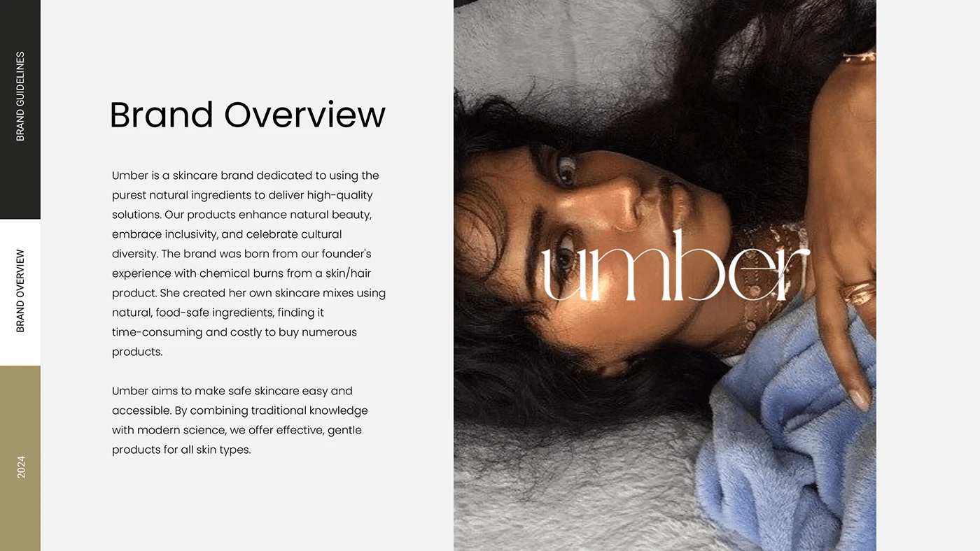 Umber is a pioneering skincare brand dedicated to providing safe, effective, and restorative solutions for women with damaged skin. Inspired by our founder's personal journey of healing through natural ingredients, Umber emphasizes inclusivity, authenticity, and innovation. Our mission is to empower women to achieve their skin goals and embrace their natural beauty with confidence.