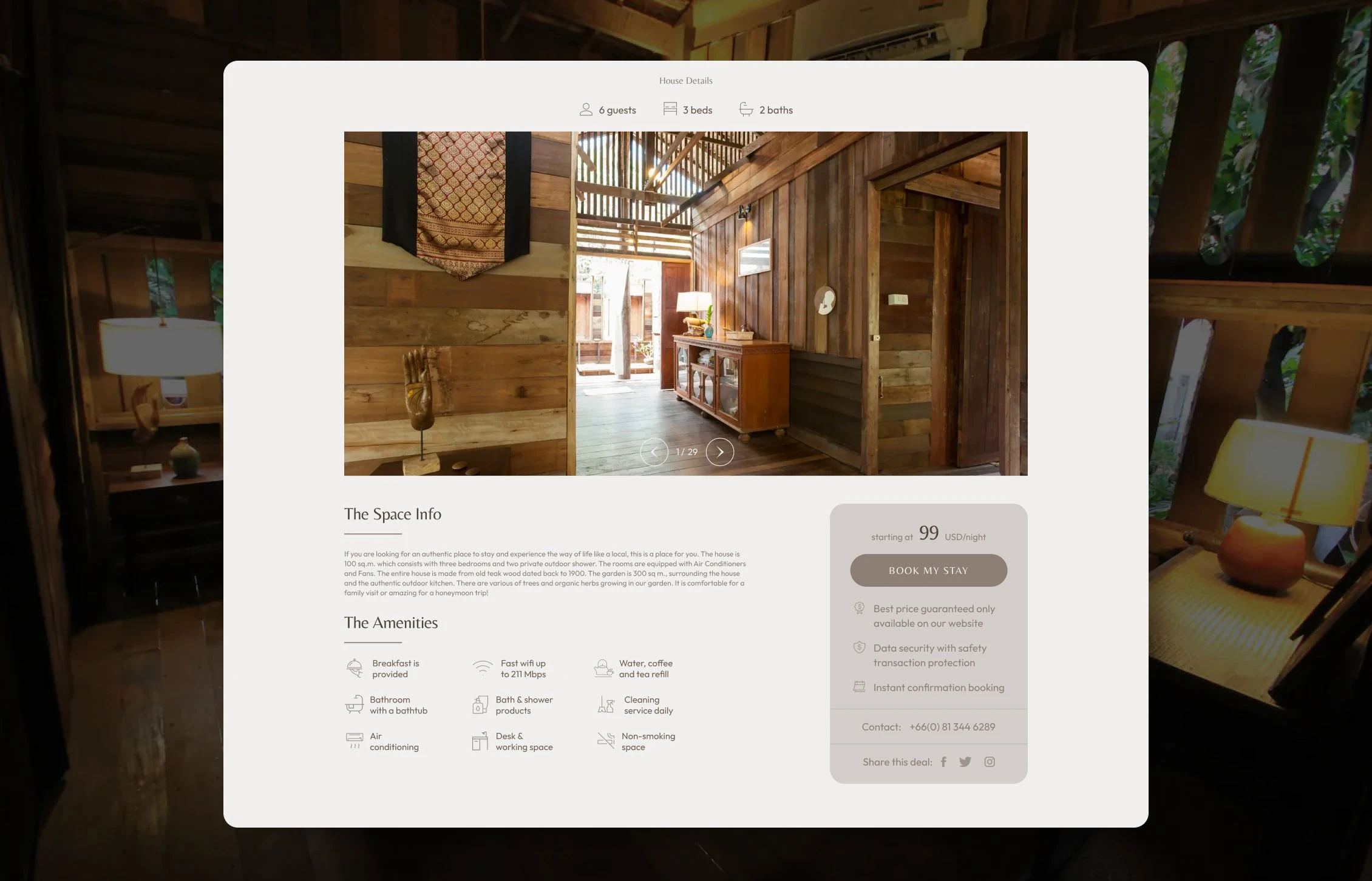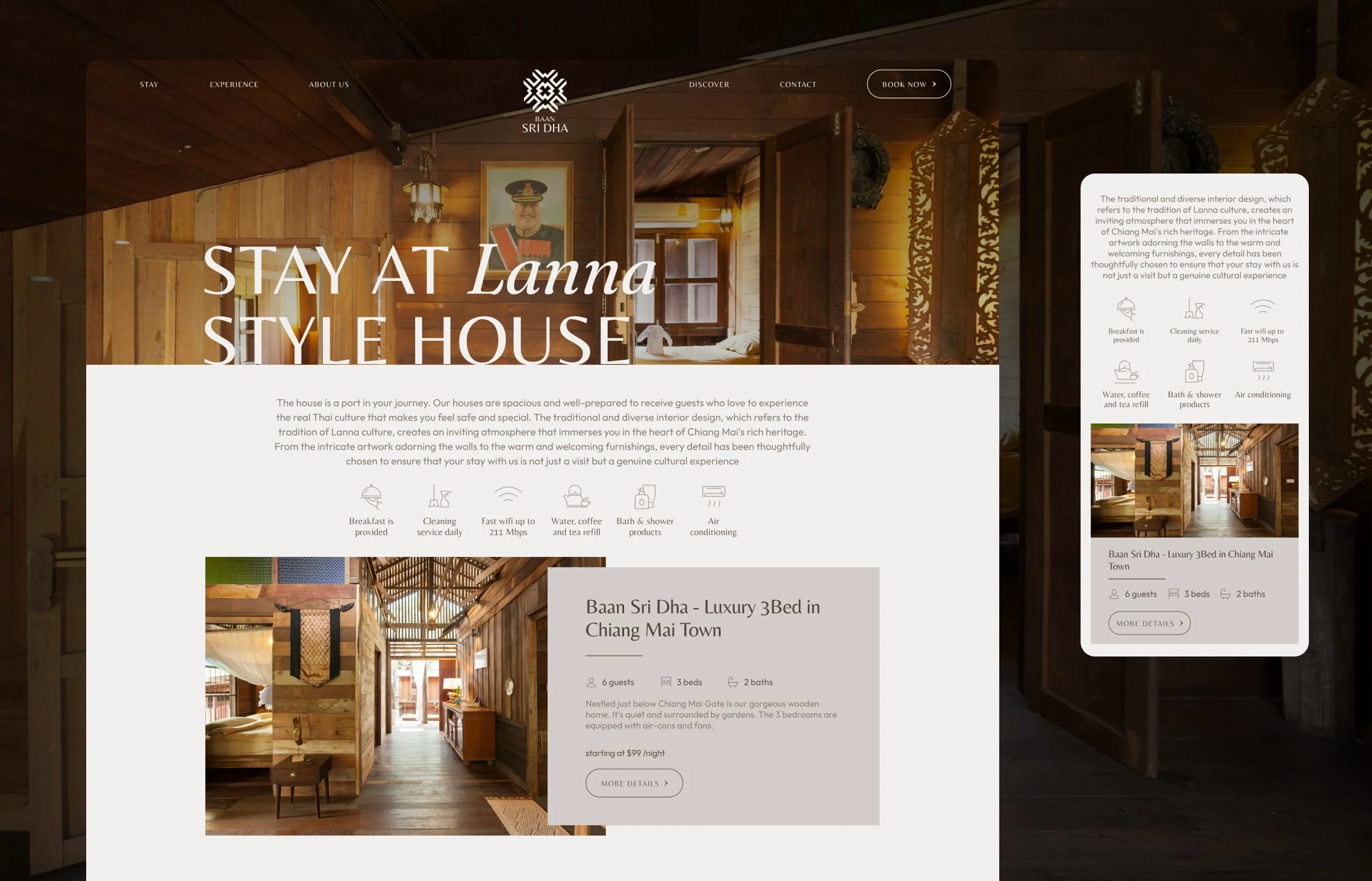 Designed a serene website for Baan Sri Dha Airbnb stay.